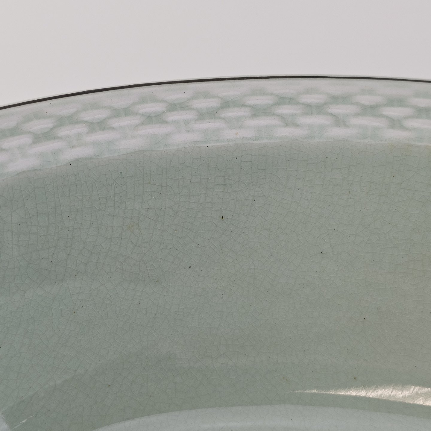 Stel i lysegrøn fajance med natur dekoration og flettet kant