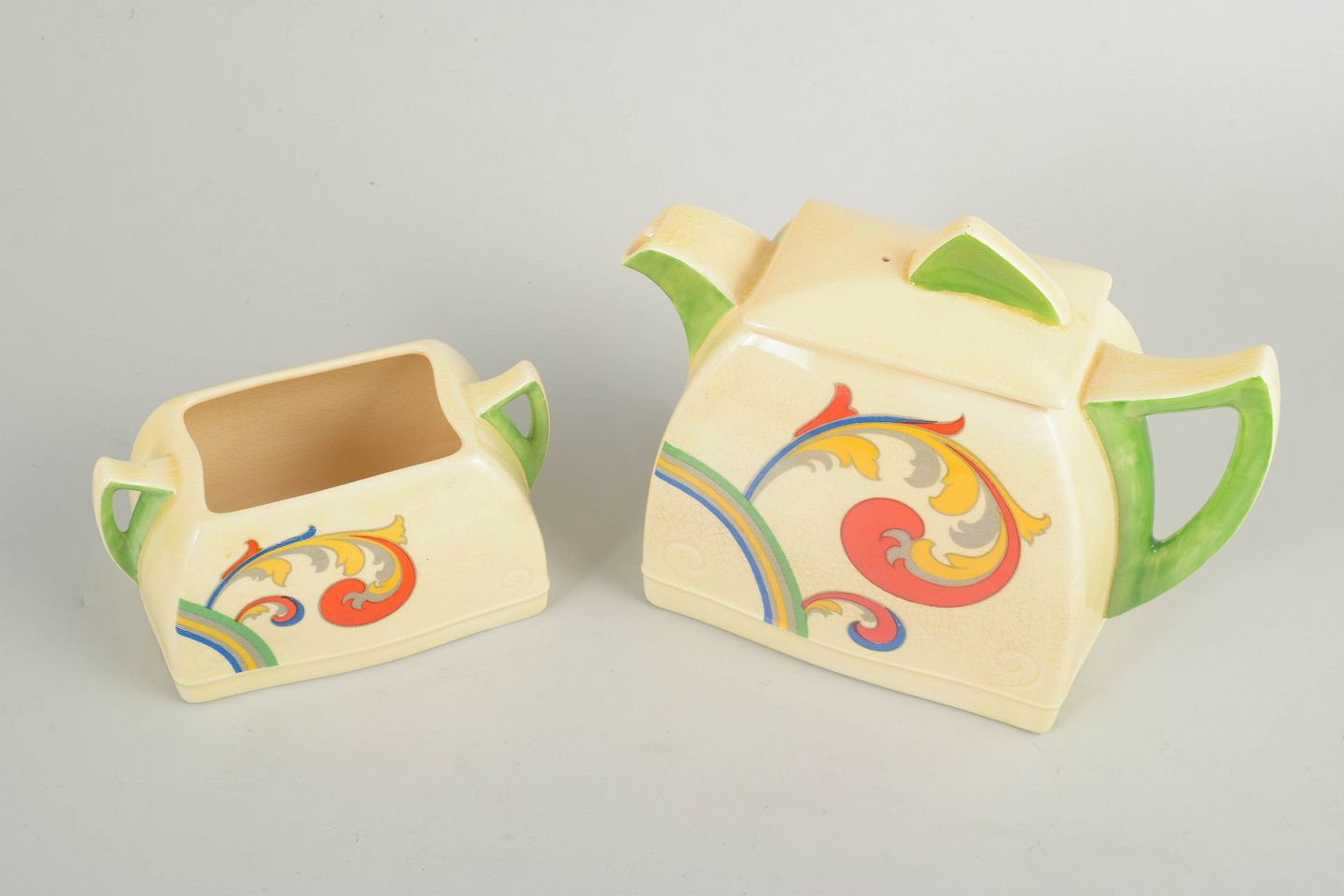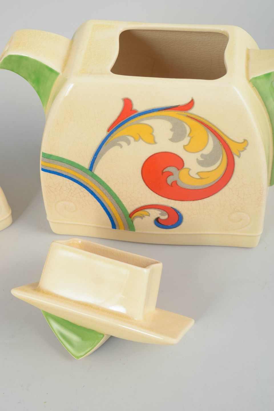 Clarice Cliff for Royal Doulton, tekande og sukkerskål.
