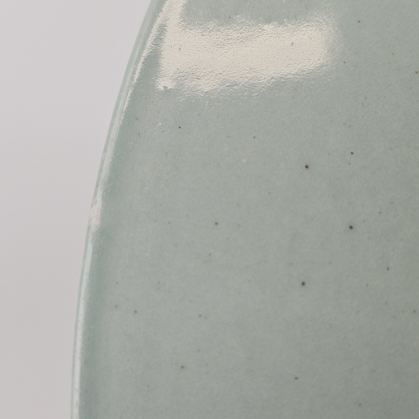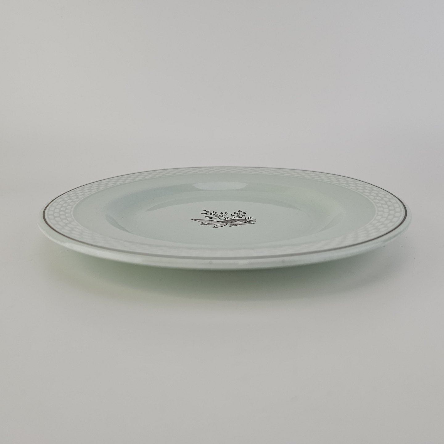 Stel i lysegrøn fajance med natur dekoration og flettet kant