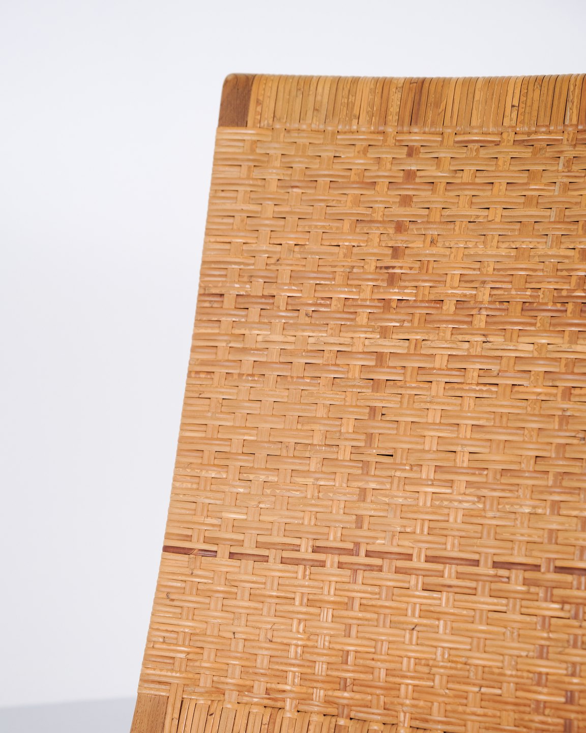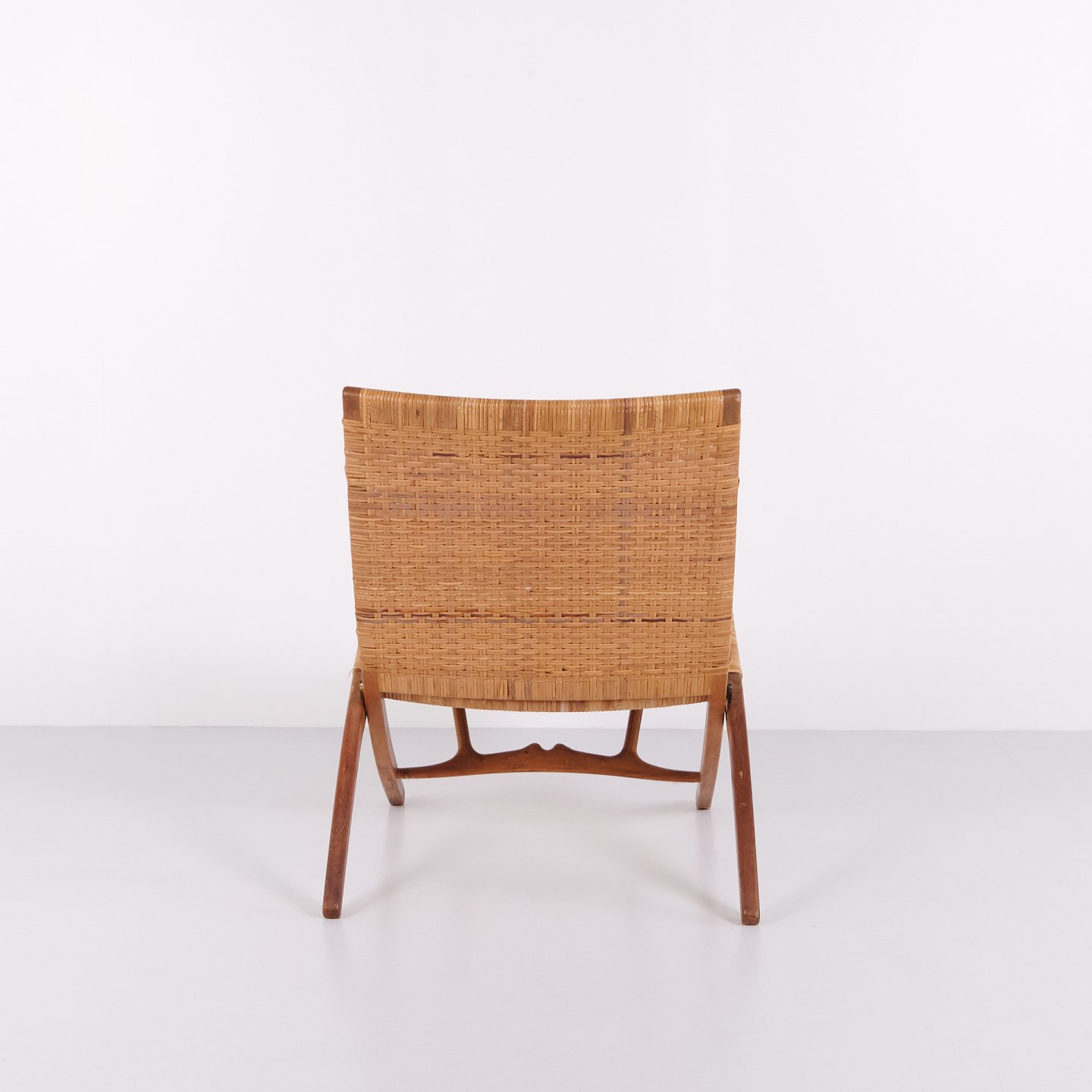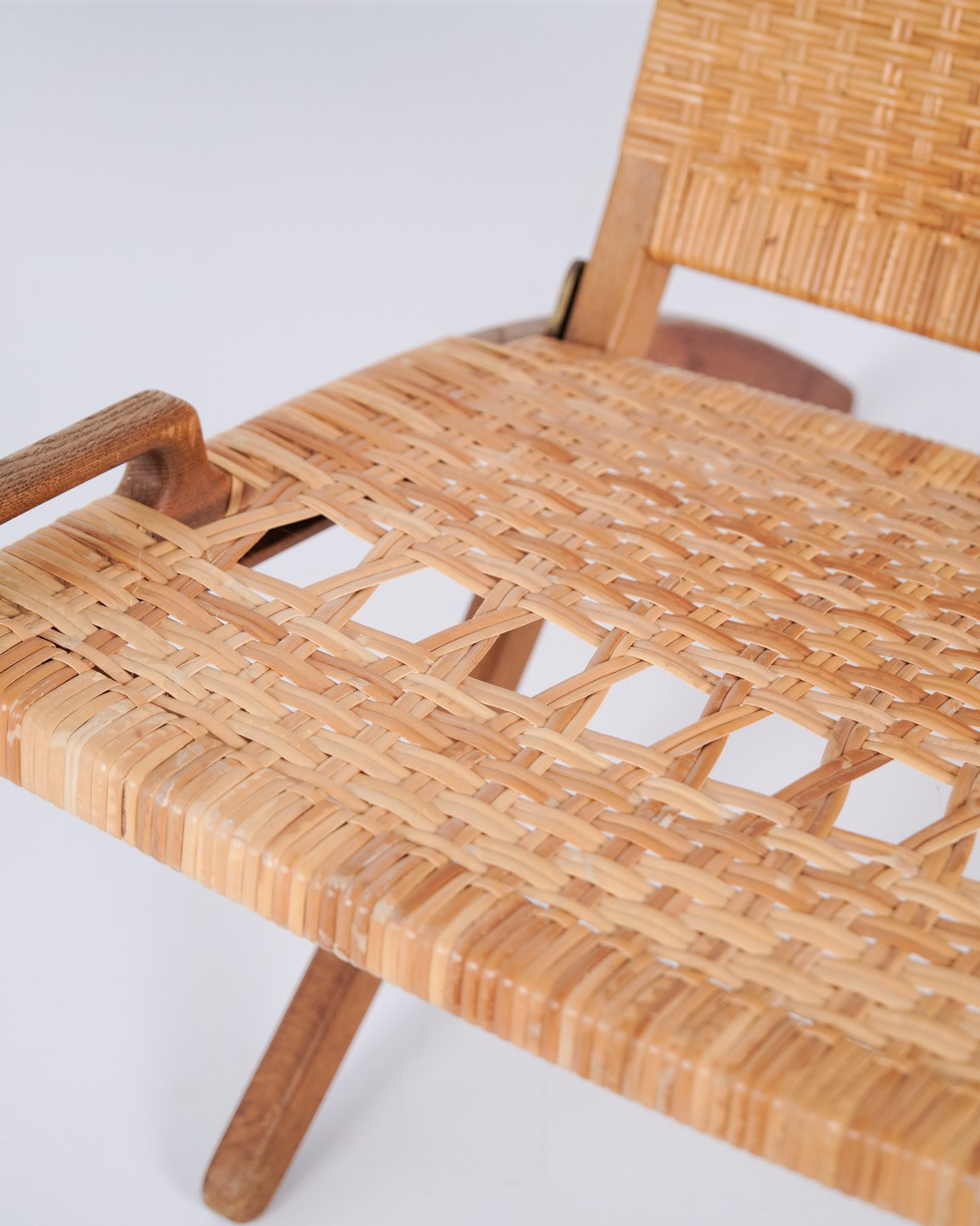 Wegner JH512 Kaminstolen af Johannes Hansen i patineret egetræ med originalt flet og producentstempel. Dansk design 1950’erne.