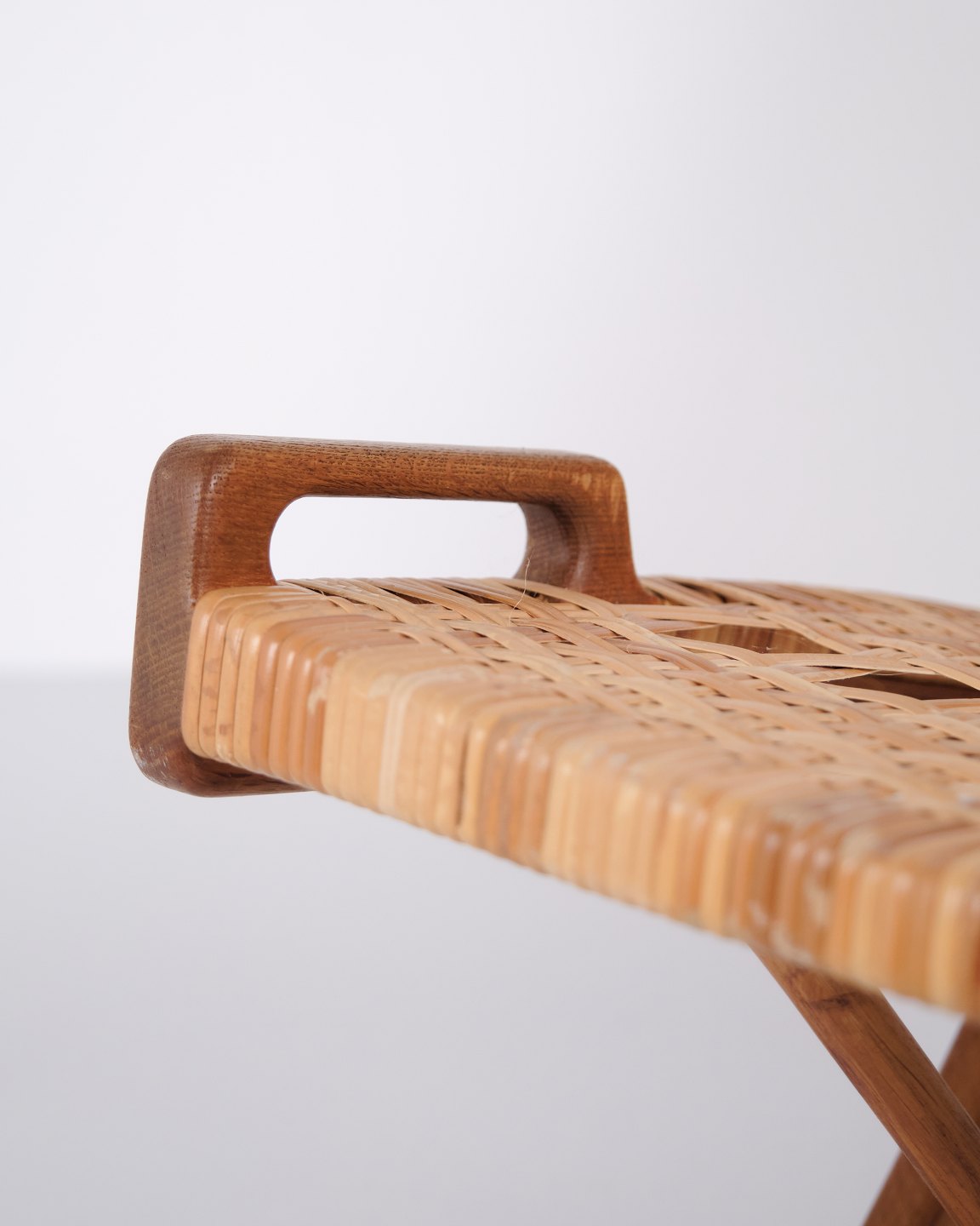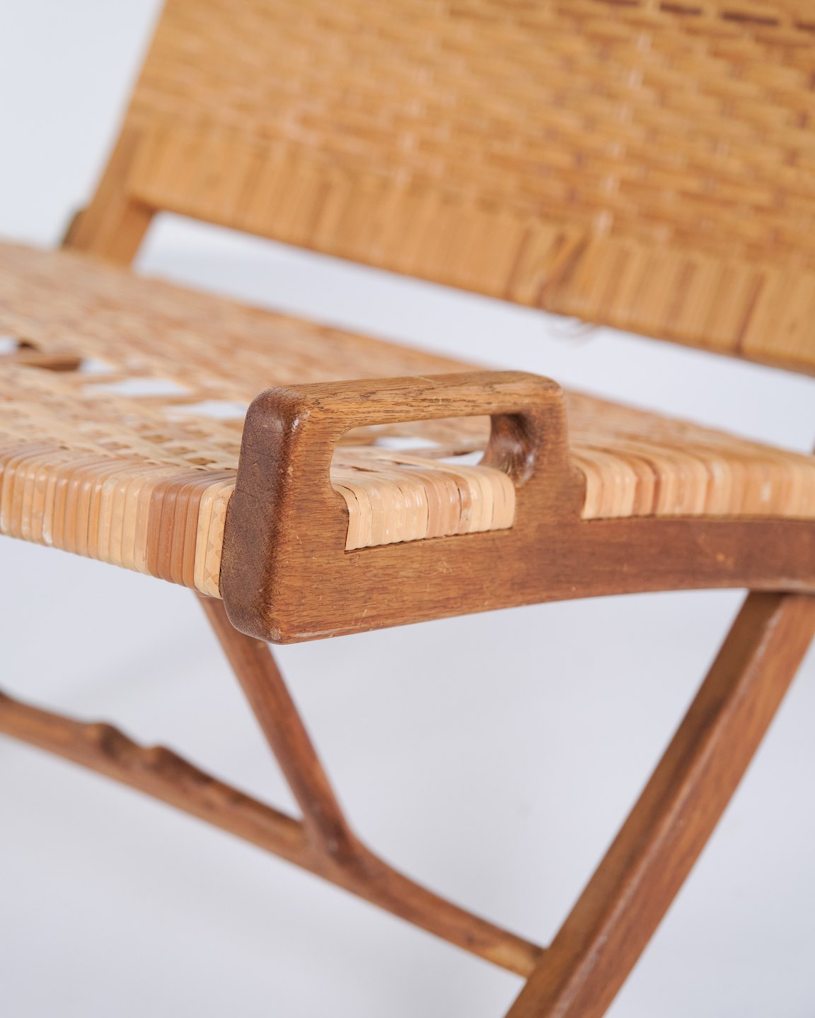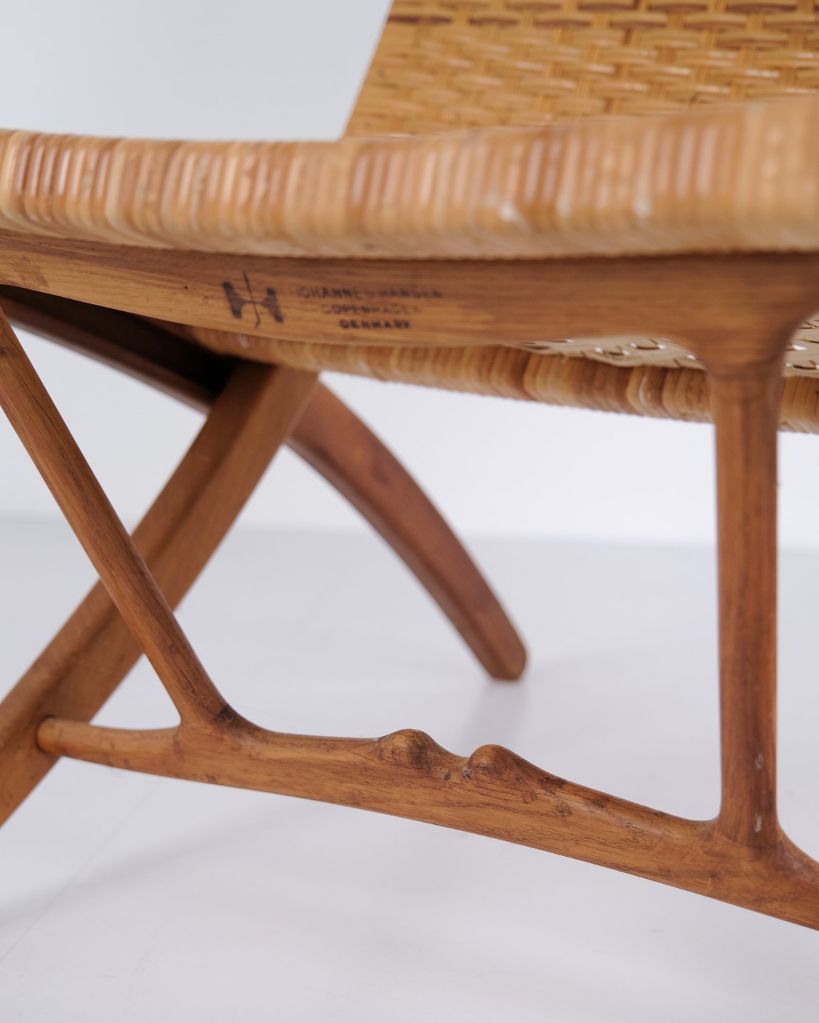 Wegner JH512 Kaminstolen af Johannes Hansen i patineret egetræ med originalt flet og producentstempel. Dansk design 1950’erne.
