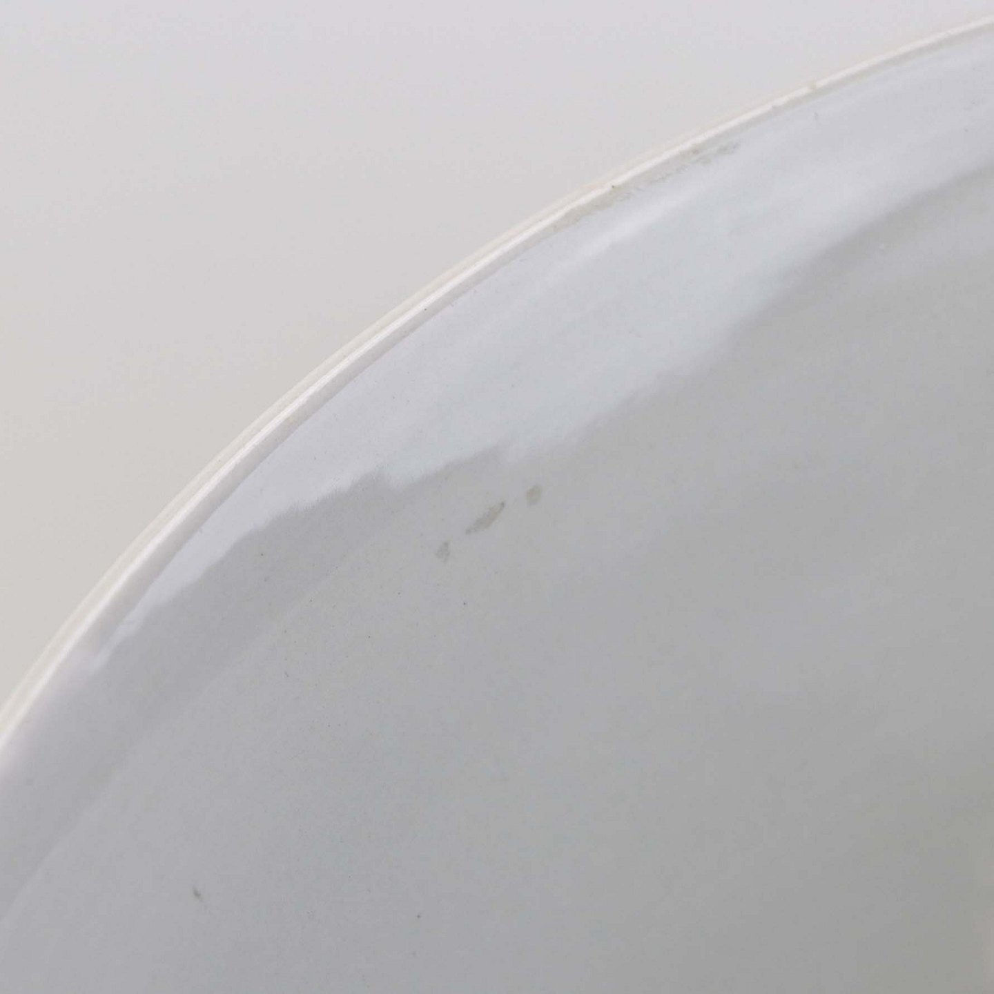 Fremstår med mindre mørkninger enkelte steder på glasuren på indvendig side samt mindre ujævnhed ved topkanten.