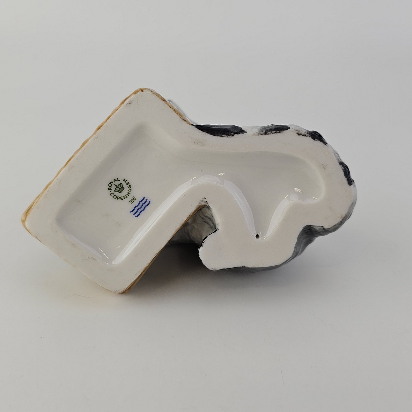 Figur i kongeligt porcelæn med motiv af en vaskebjørn med en picnickurv
