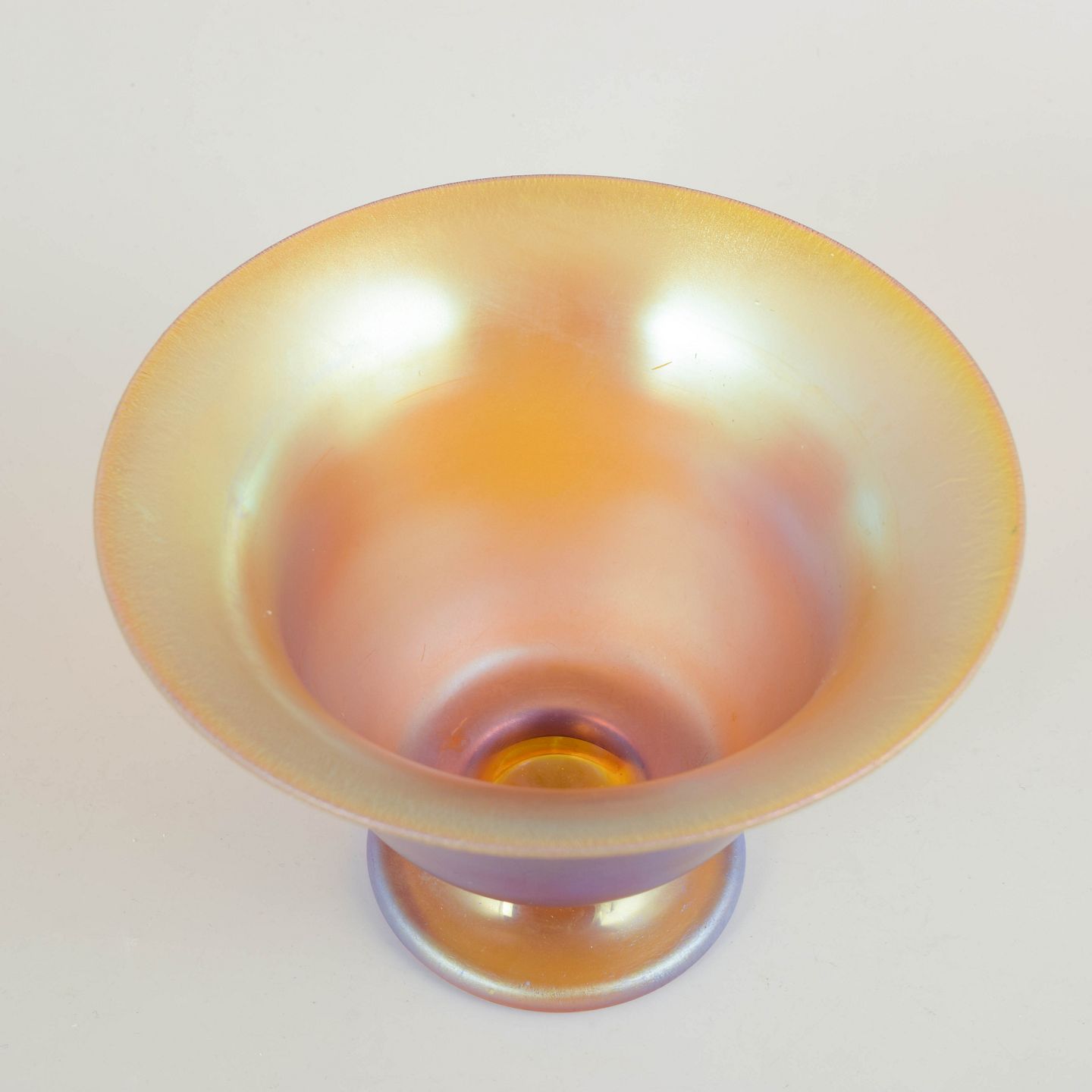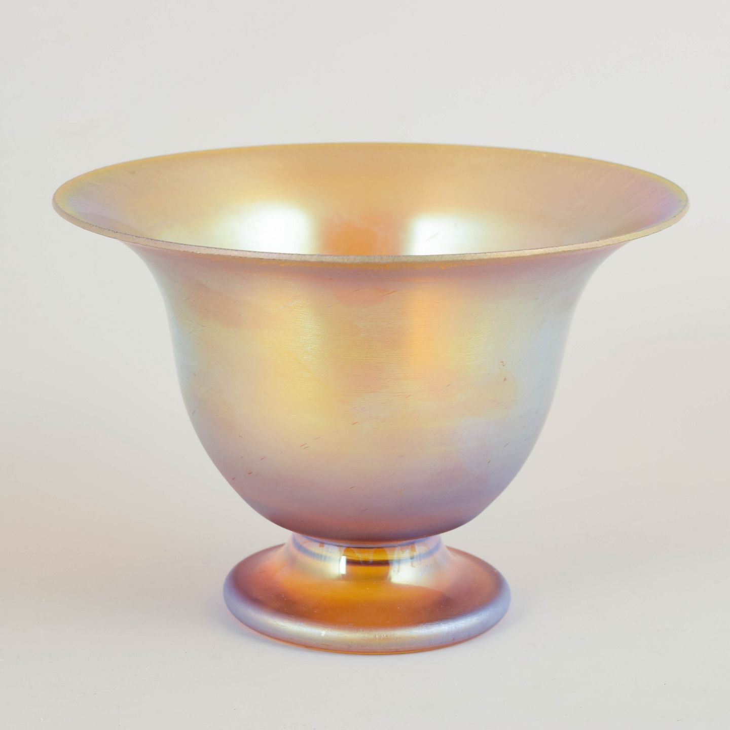 WMF (Württembergische Metallwarenfabrik) var blandt Tysklands førende producenter af design- og luksusvarer i første halvdel af 1900-tallet. I Art Deco-perioden blev kunstglas ofte udformet med harmoniske proportioner og forædlede overflader, herunder iriserende behandlinger, der gav dybde og levende farvespil.