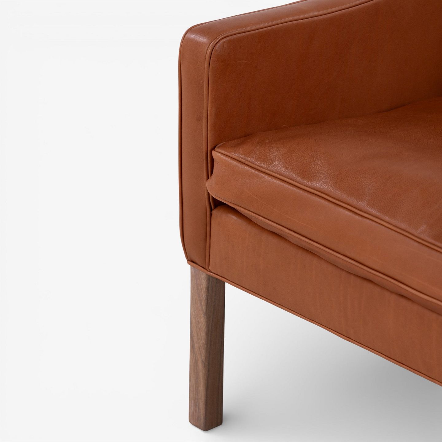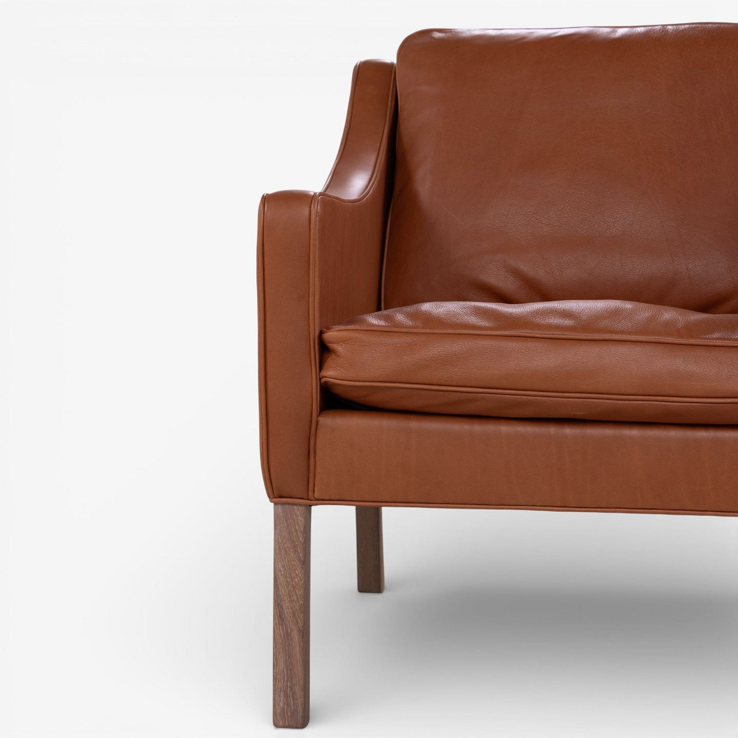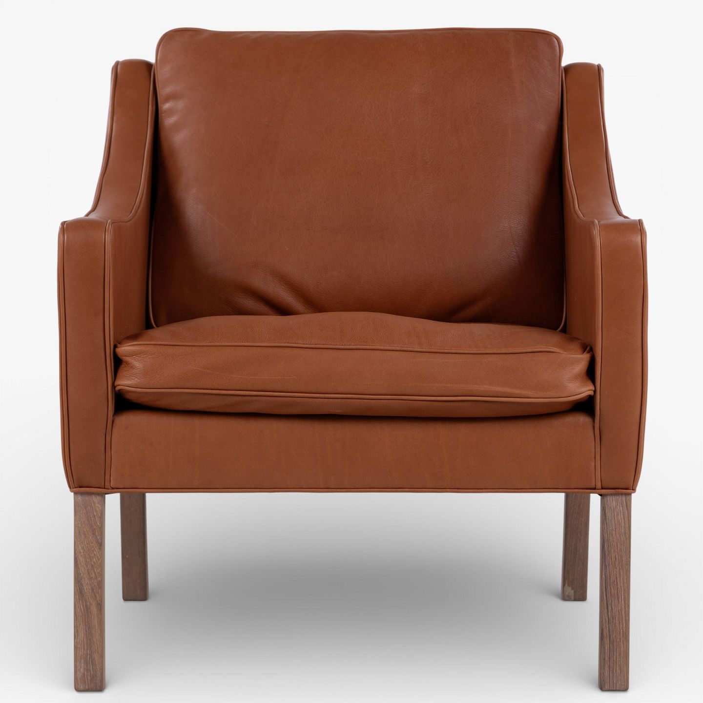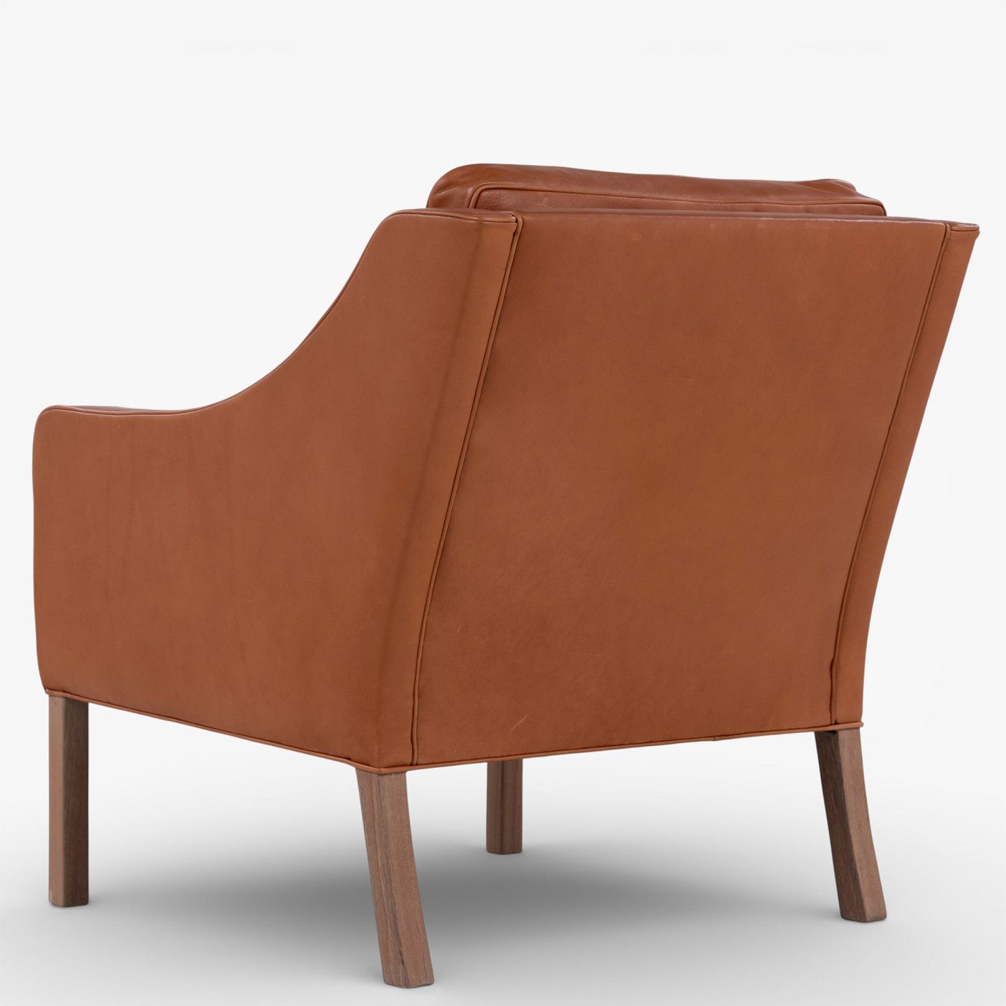 BM 2207 - Nybetrukket lænestol i cognac-farvet anilinlæder med hvidolieret ben.