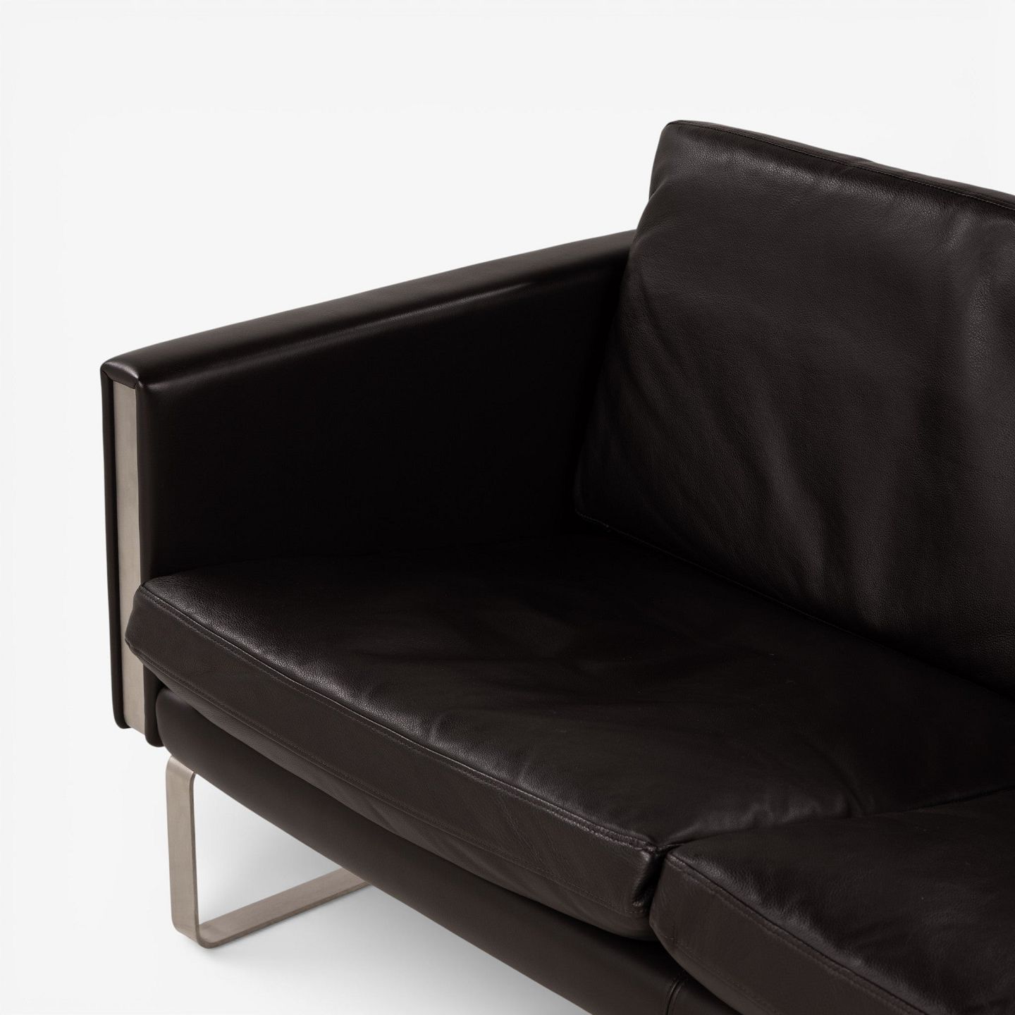 CH 102 - 2 pers. sofa i mørkebrunt, patineret semi-anilinlæder med stel i stål. Mærket fra producent.