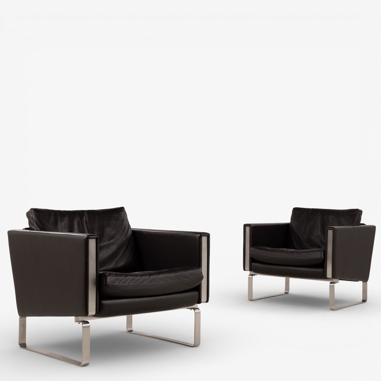 CH 101 - Lænestol i mørkebrunt, patineret semi-anilinlæder med stel i stål. Mærket fra producent.