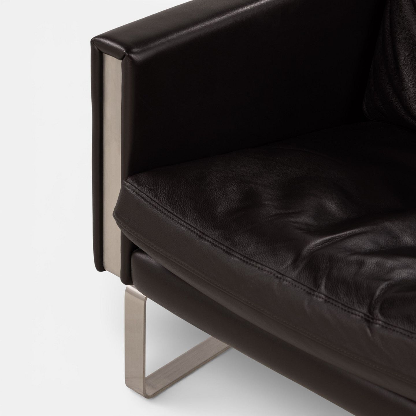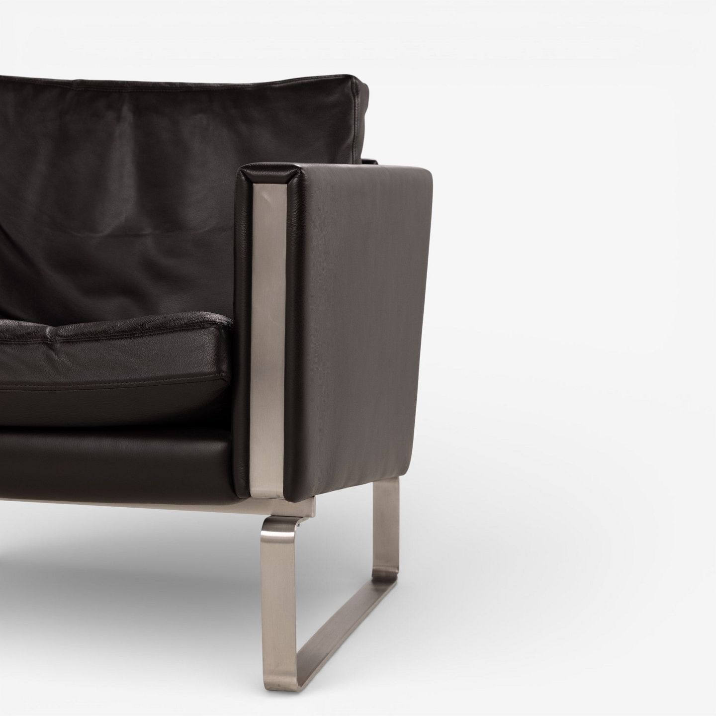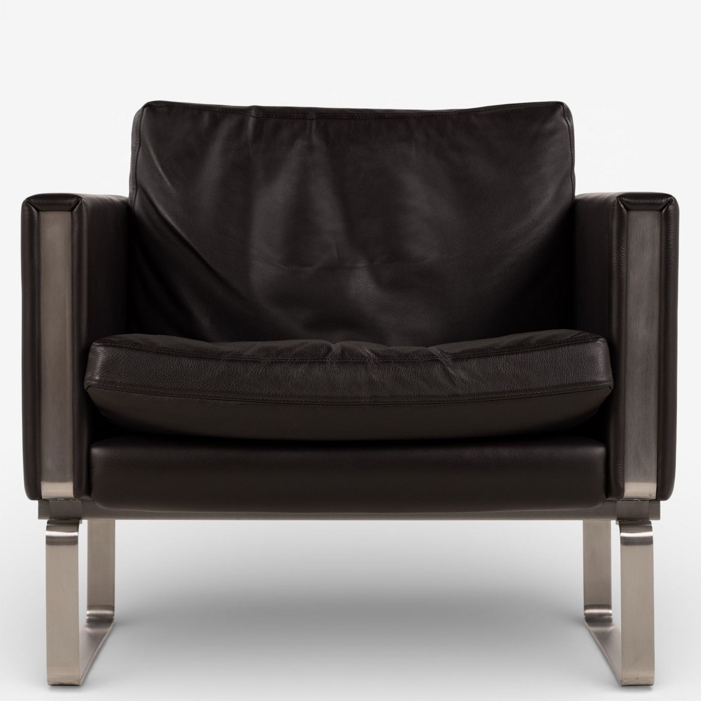 CH 101 - Lænestol i mørkebrunt, patineret semi-anilinlæder med stel i stål. Mærket fra producent.