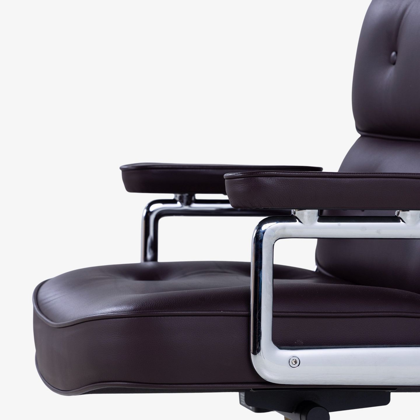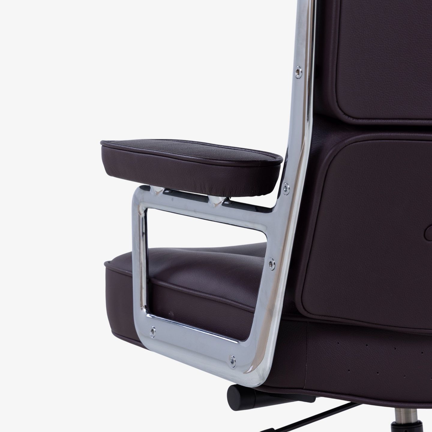 ES-104 - Kontorstol i mørkebrunt læder m. armlæn og stel i stål m. højdejustering. Mærket fra producent.