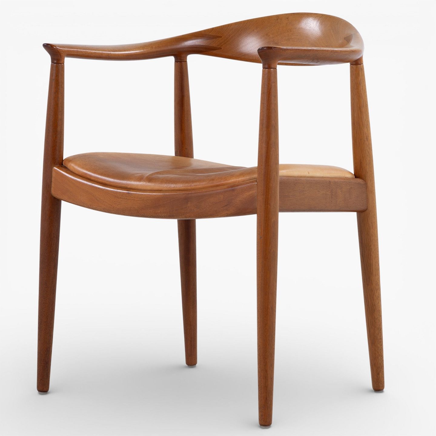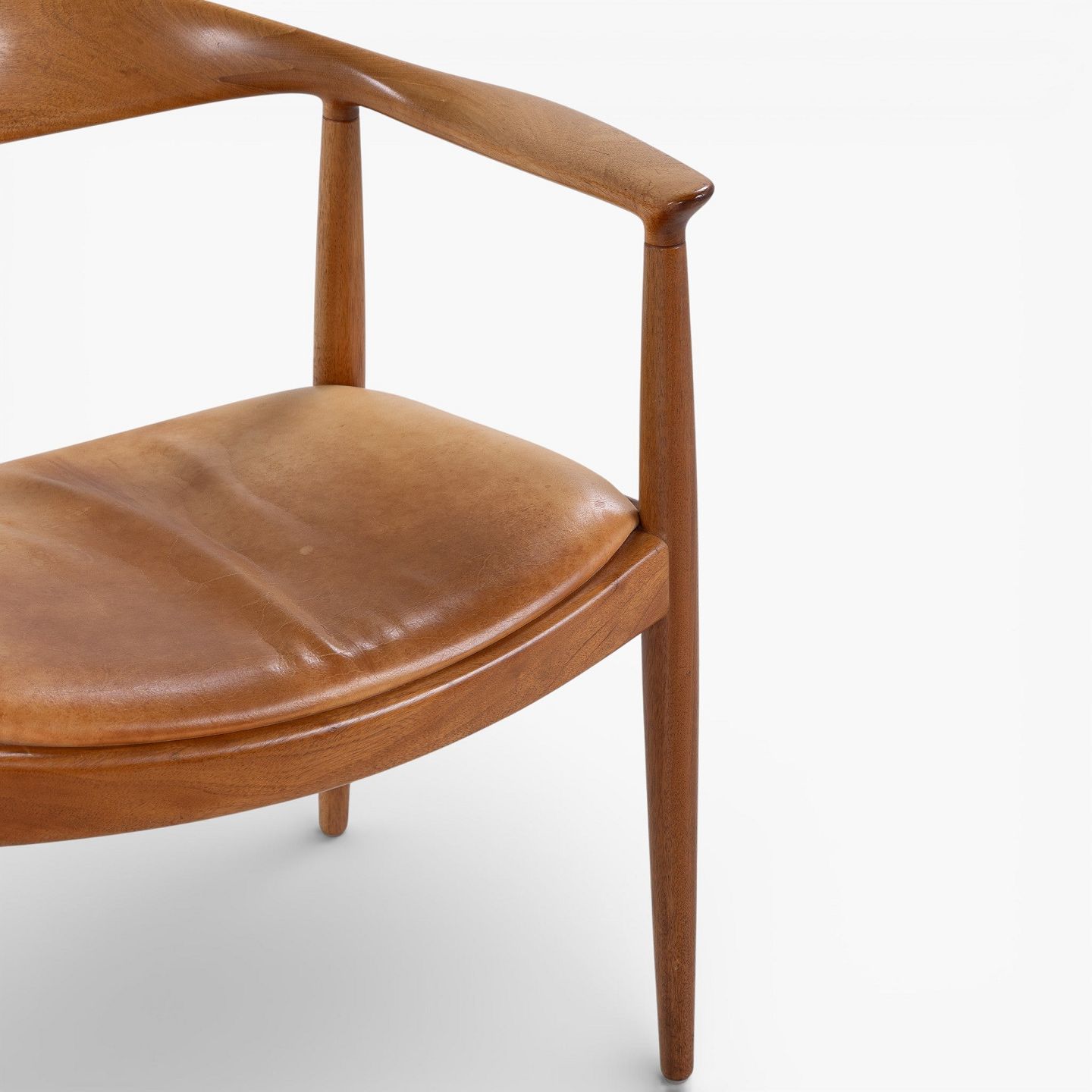 JH 503 - 'The Chair'-armstol i mahogni med sæde i patineret naturlæder. Mærket fra producent.