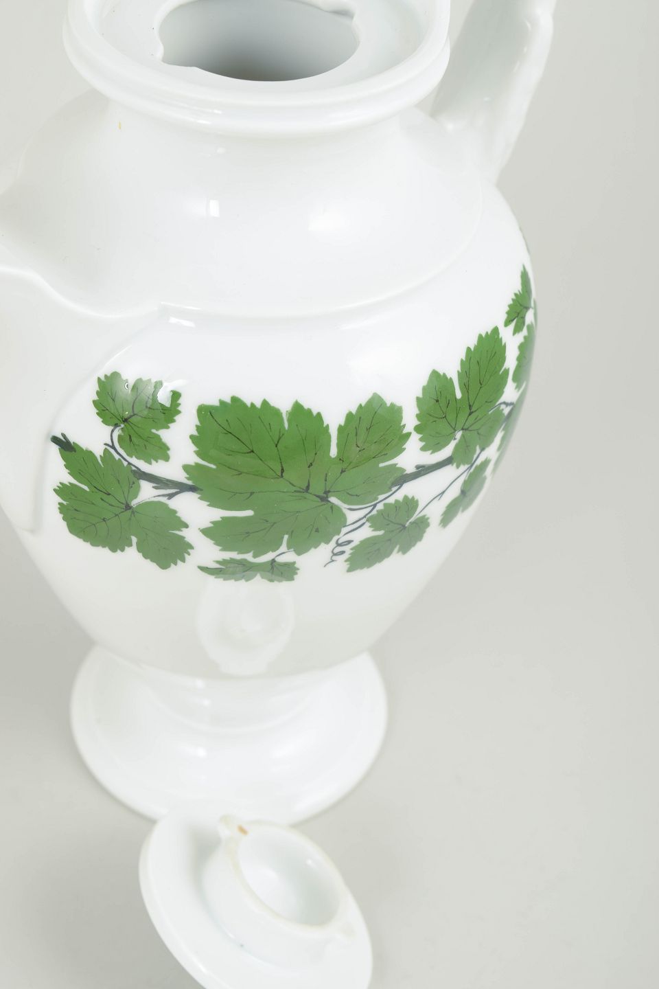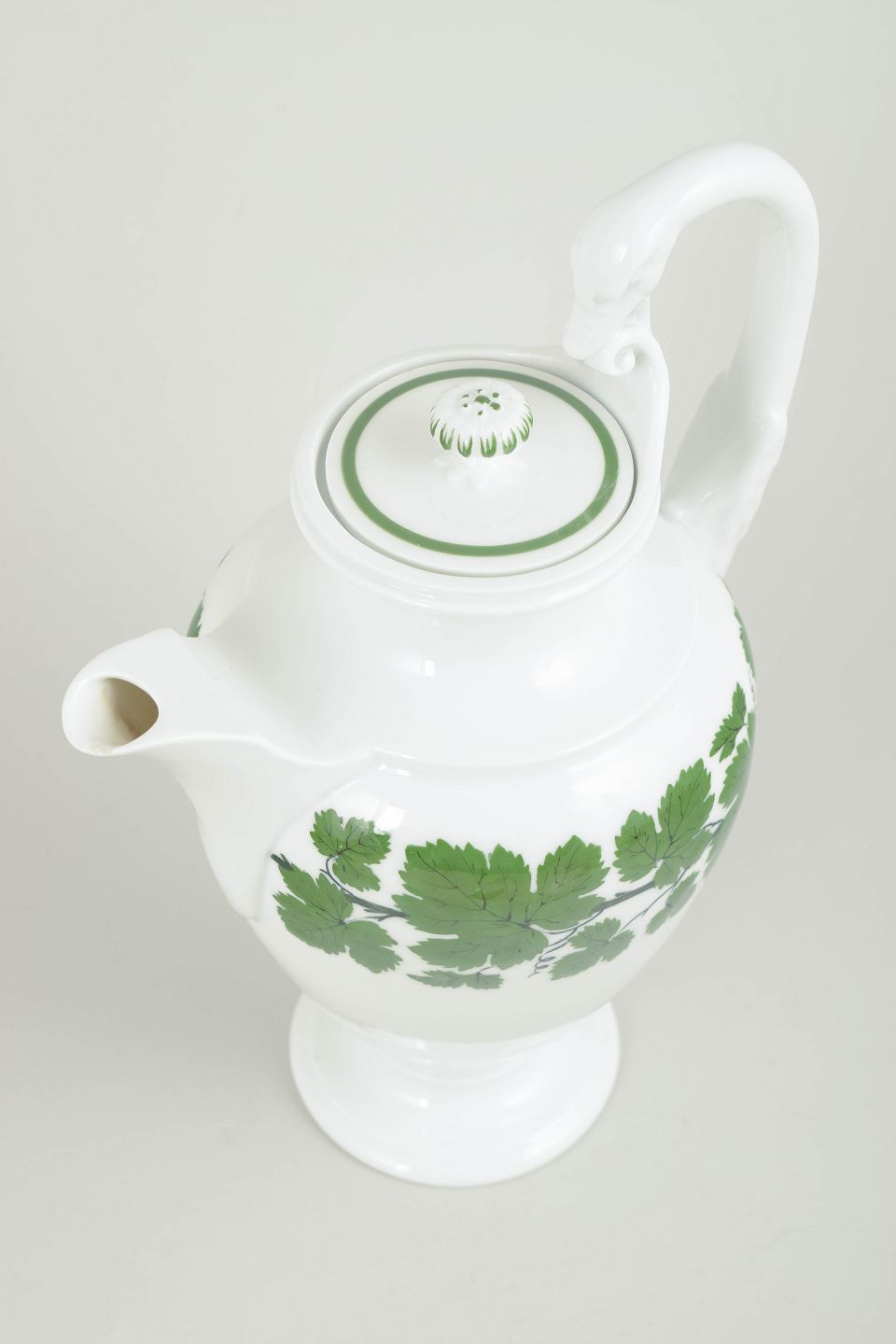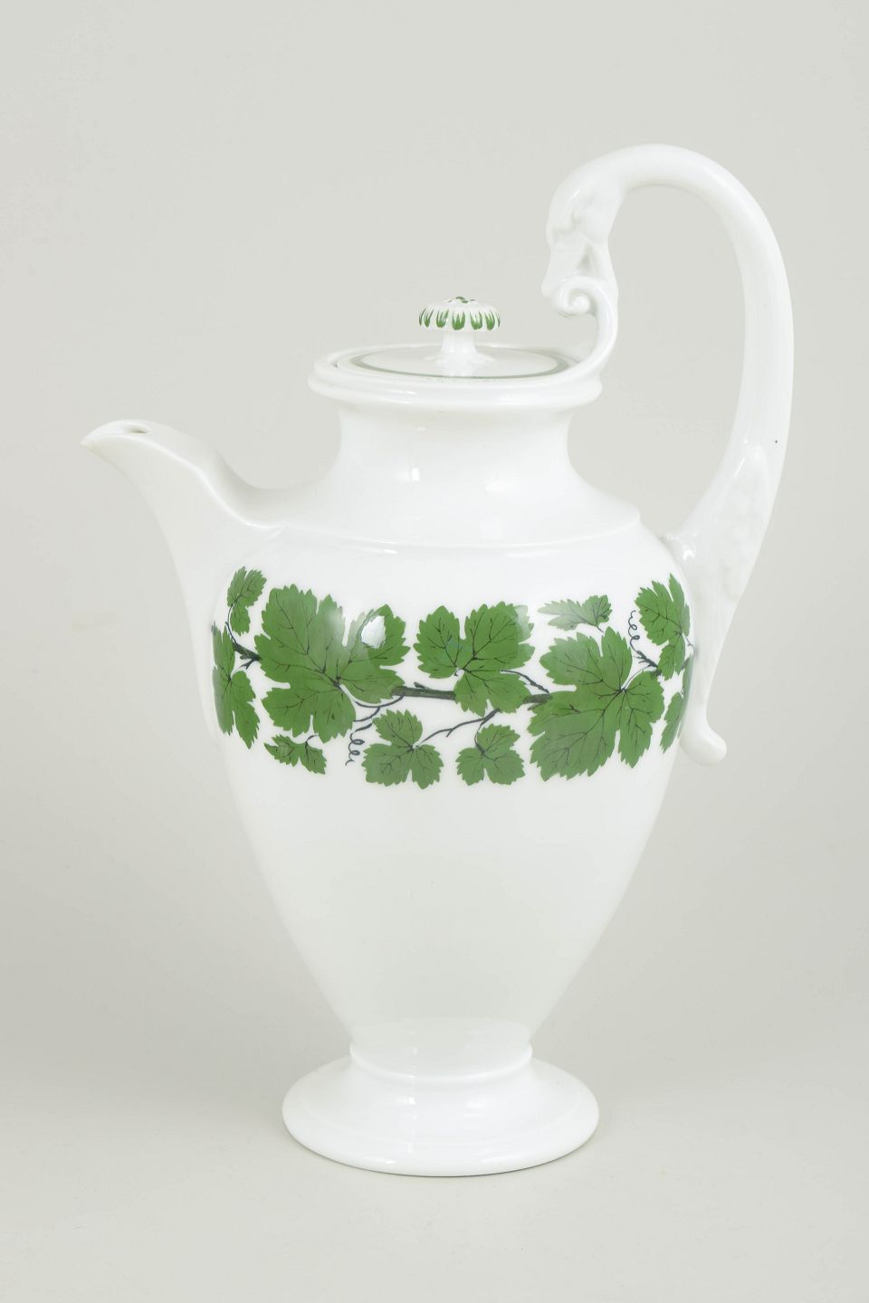 Chokoladekande i porcelæn med grøn vinranke- og vinløvsdekoration omkring korpus; fra den grønne vinløvsserie.