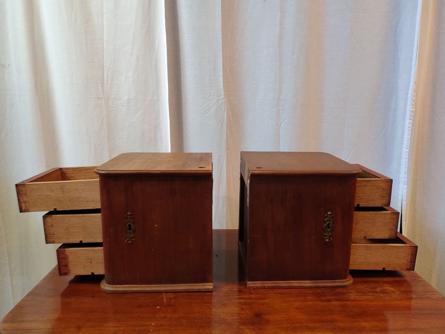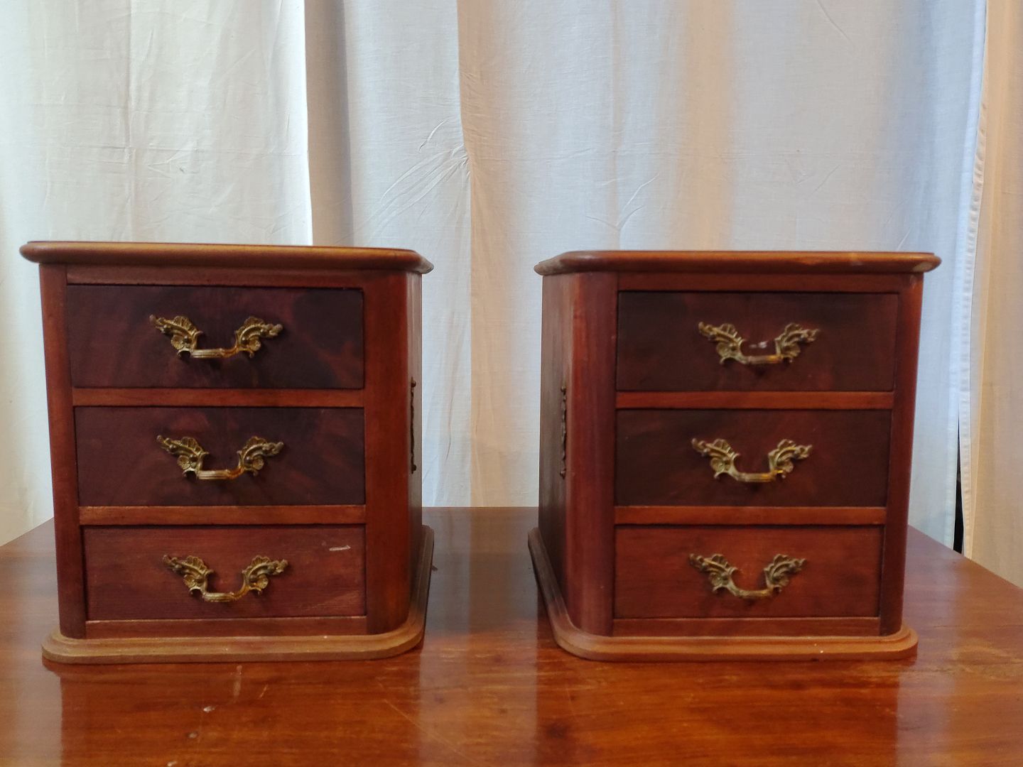 2 Små kommoder i fineret mahogni, fra 1910erne.