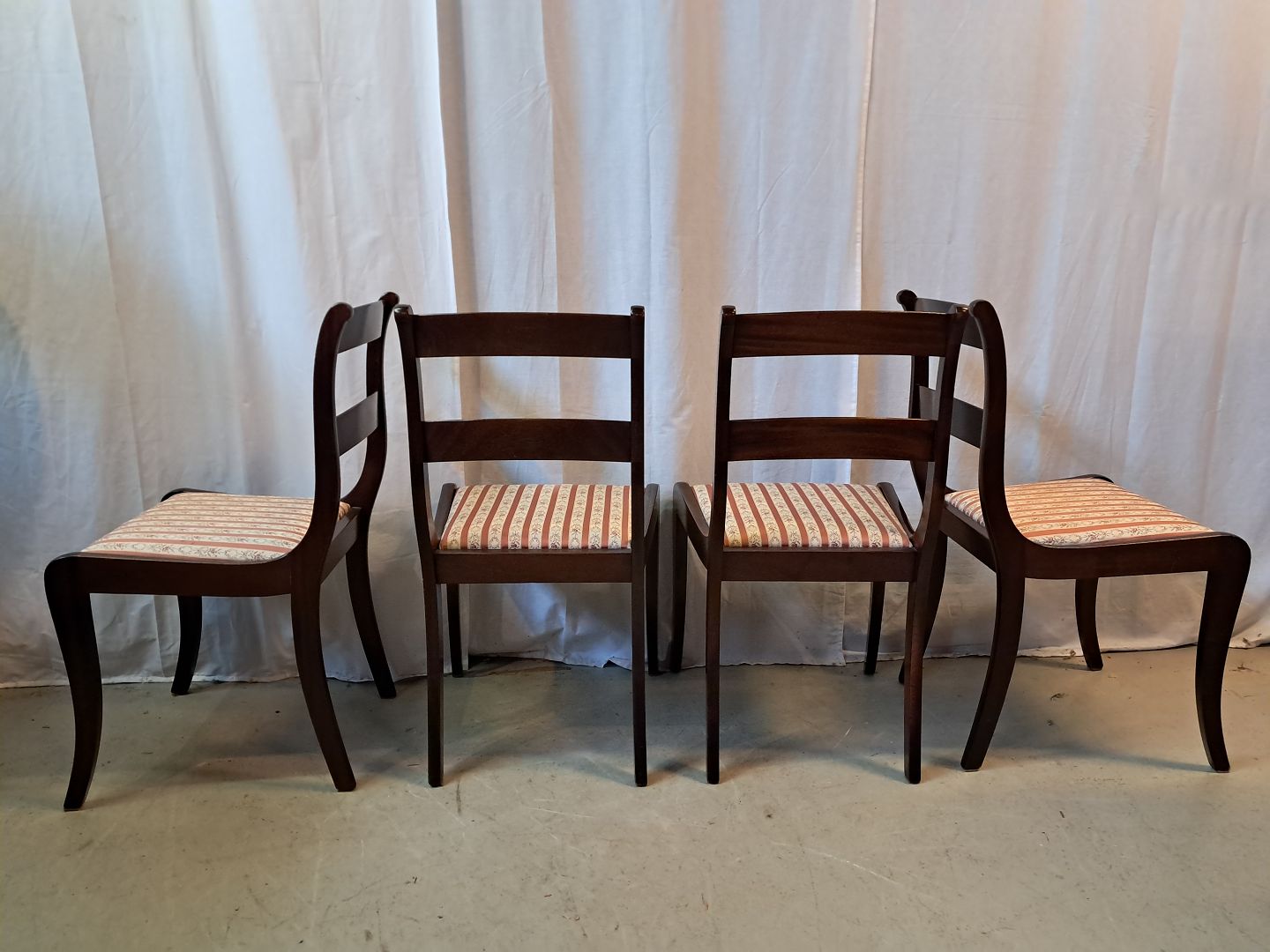 4 Stole i massivt mahogni og bøgetræ, fra 1980erne.