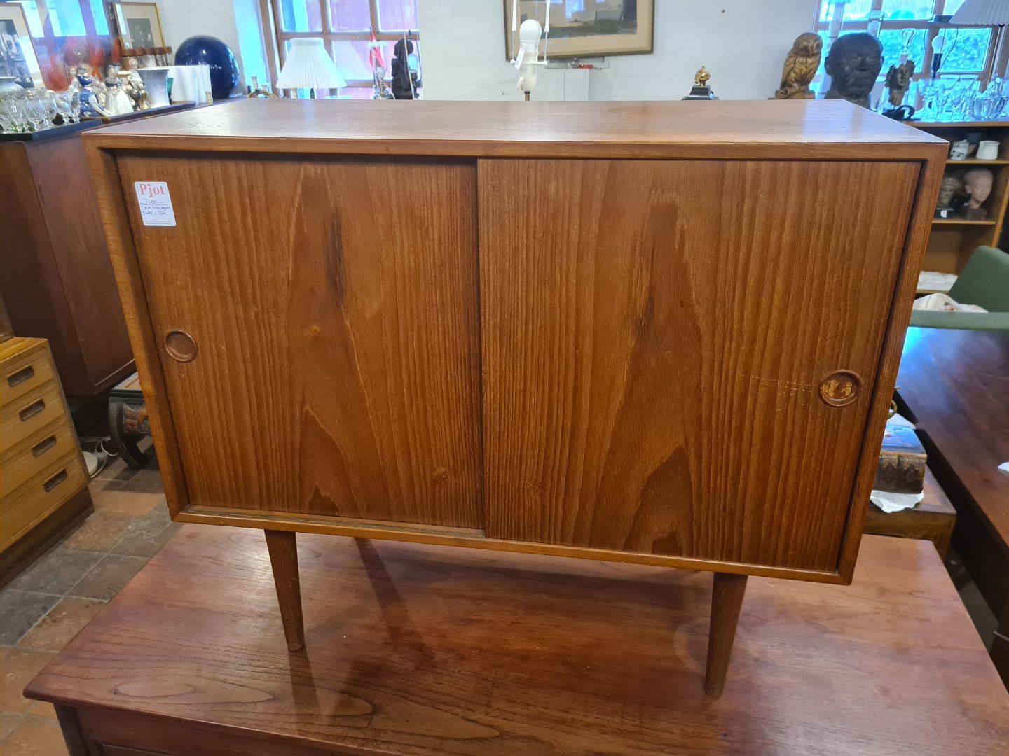 Kai Kristiansen skab m. skydelåger udført i fineret teak. Fremstillet ca. 1960'erne.