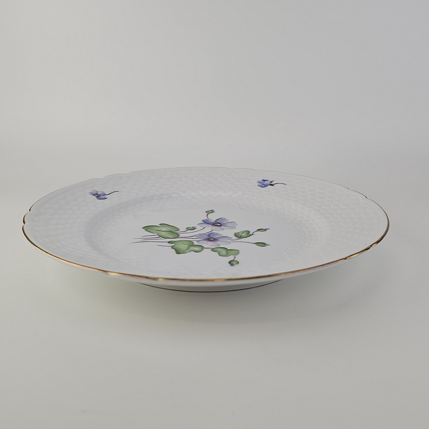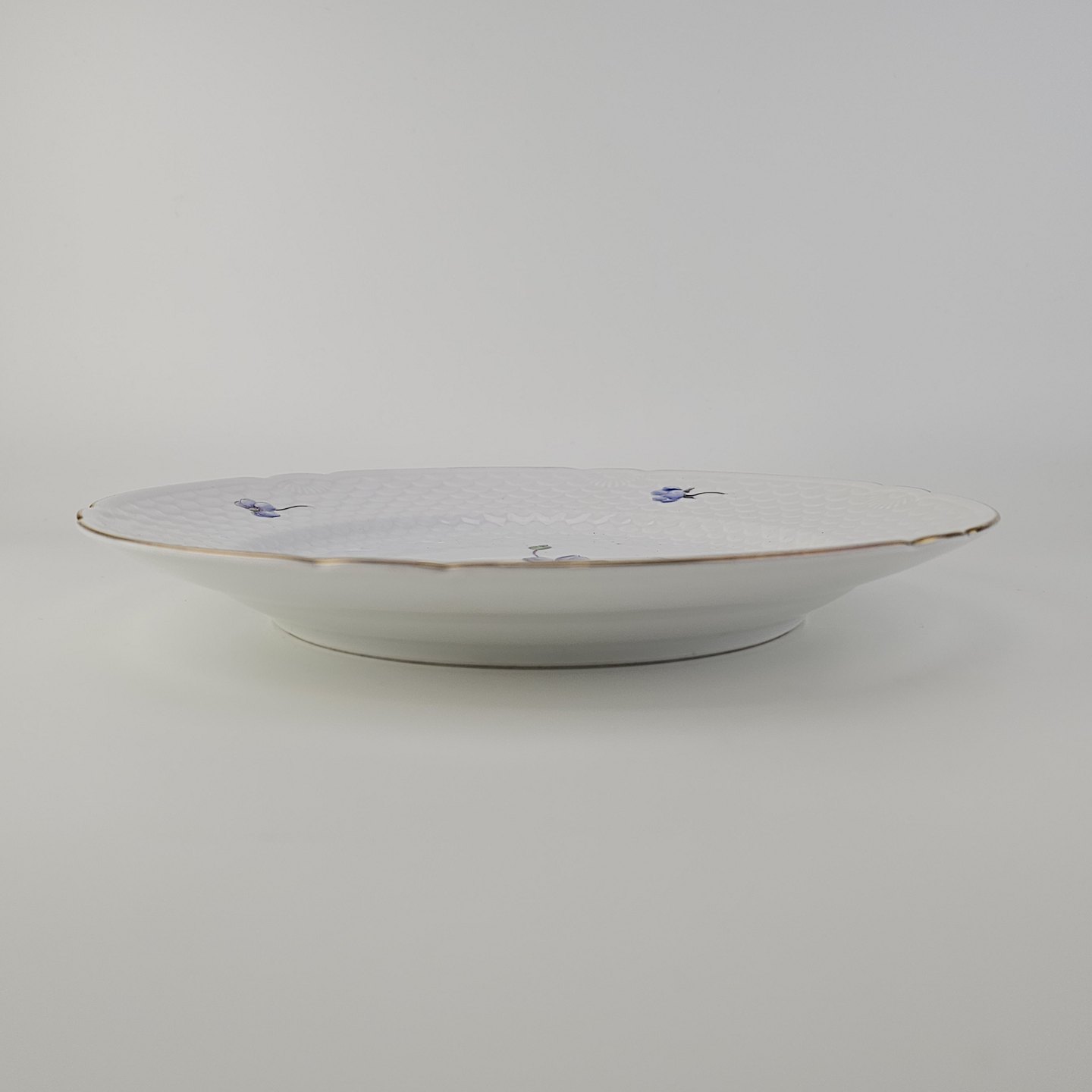 Antonius er af hvidt porcelæn med skælform dekoreret med håndmalede blå anemoner og guldkant. Også kendt under navnet Blå Anemone.