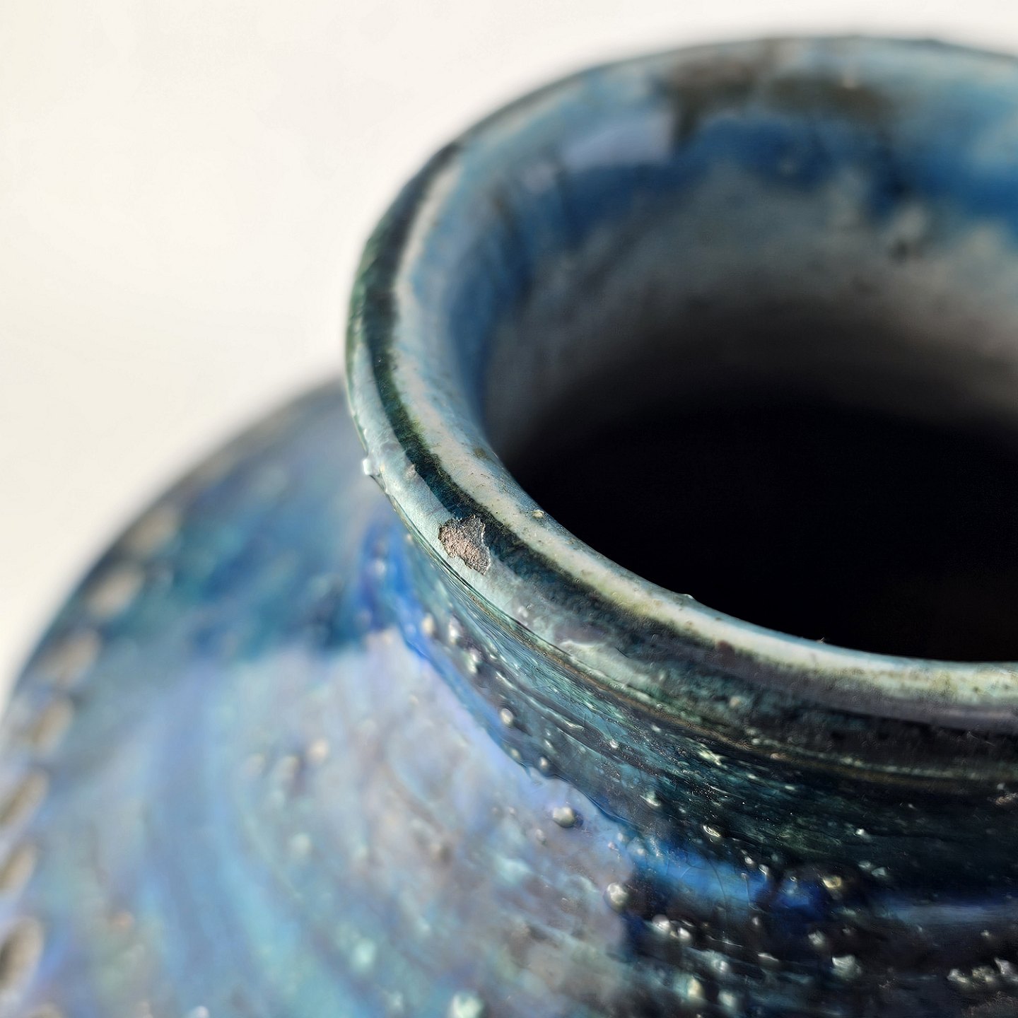Vase af keramik med rimini blå glasering og geometriske mønstre