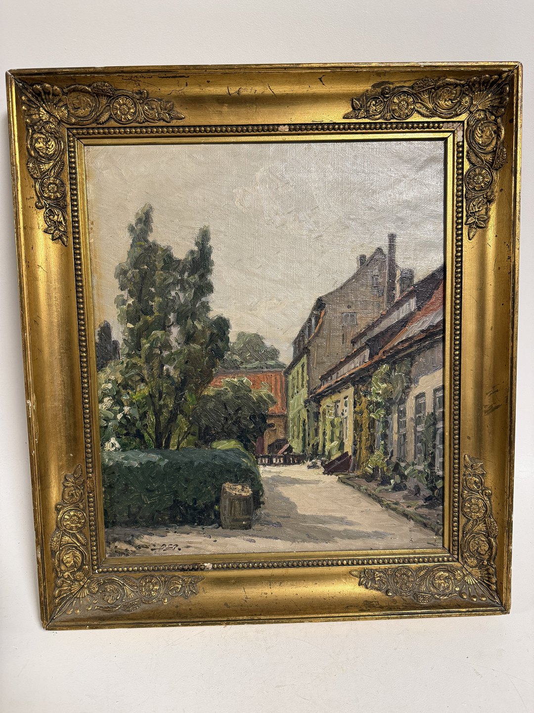 Peter Elias Petersen (1859 - 1950), Olimaleri på lærred, Baggårdsmotiv formodentlig fra København, signeret P.E.P. og bag på påskrevet P.E.Petersen 1922, Mål: 39x45cm *Et par små afslag på rammen ellers fin stand*