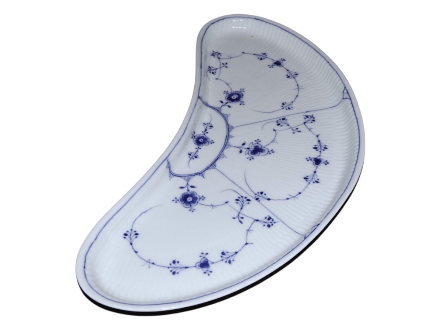 Royal Copenhagen Musselmalet Riflet, stort og meget sjældent måneformet anretterfad.