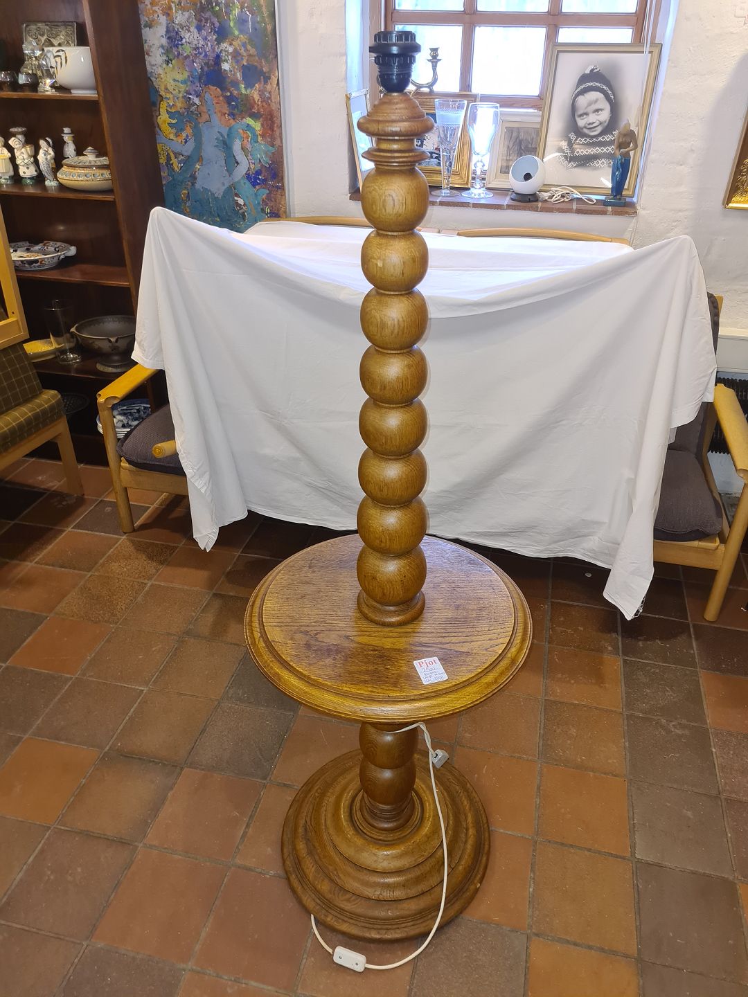Standerlampe i delvis massiv lakeret eg, fremstillet af ukendt producent ca. 1950'erne.