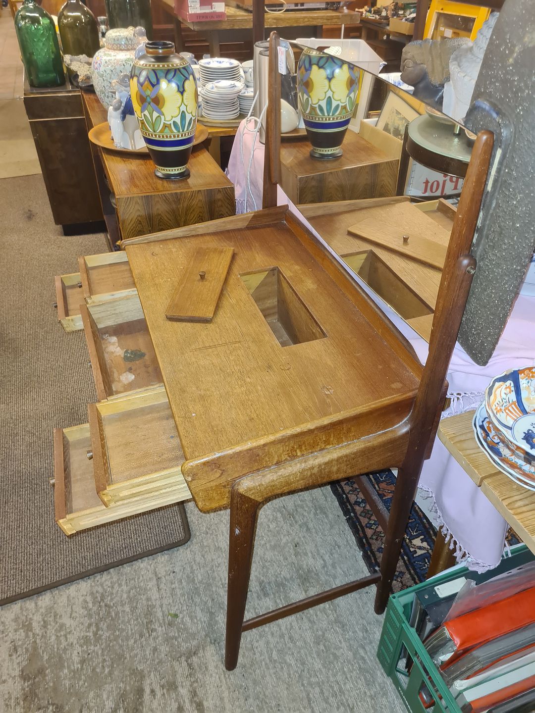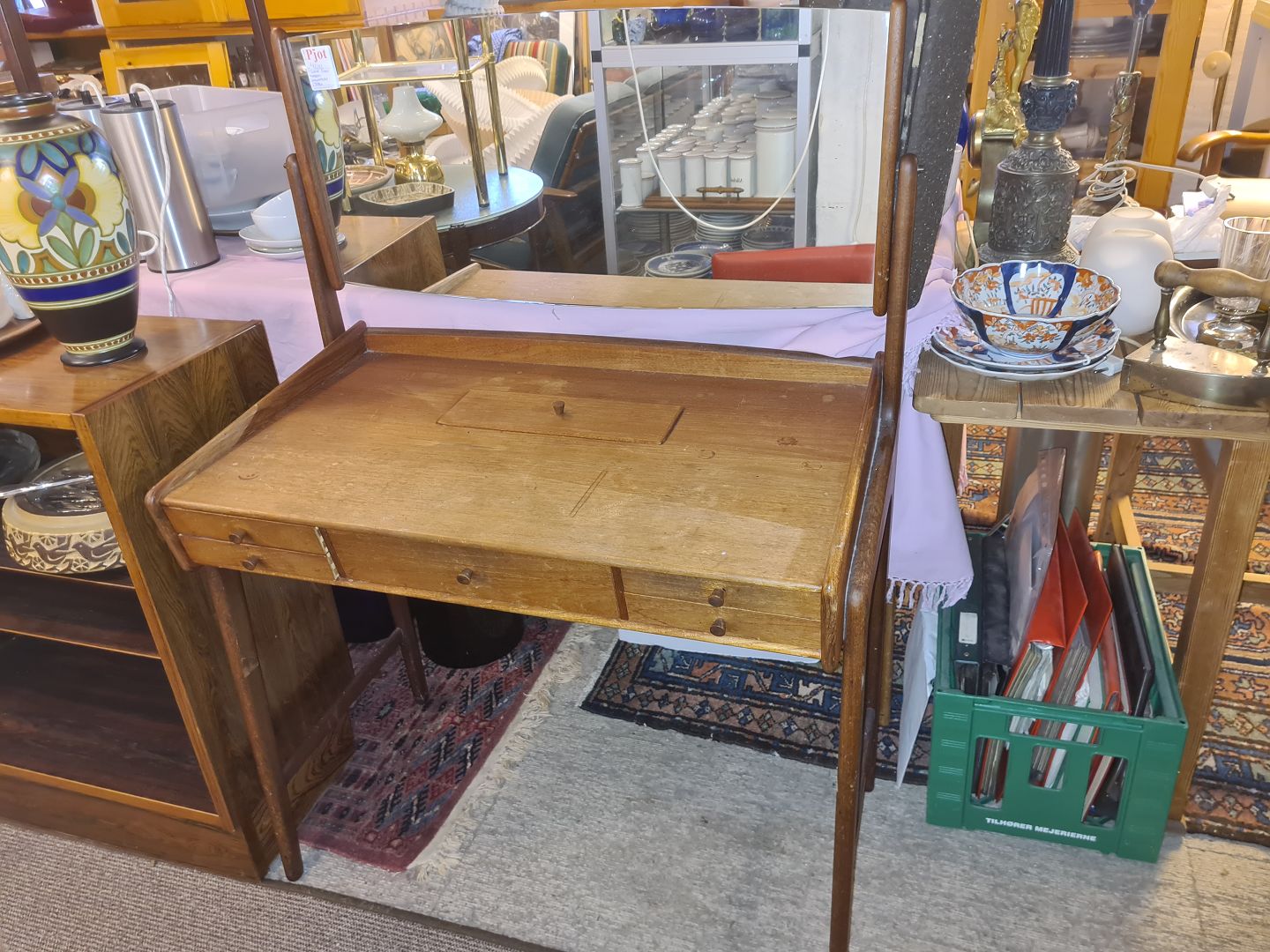 Svend Aage Madsen sminkebord i teak m. spejl med vippe funktion.
