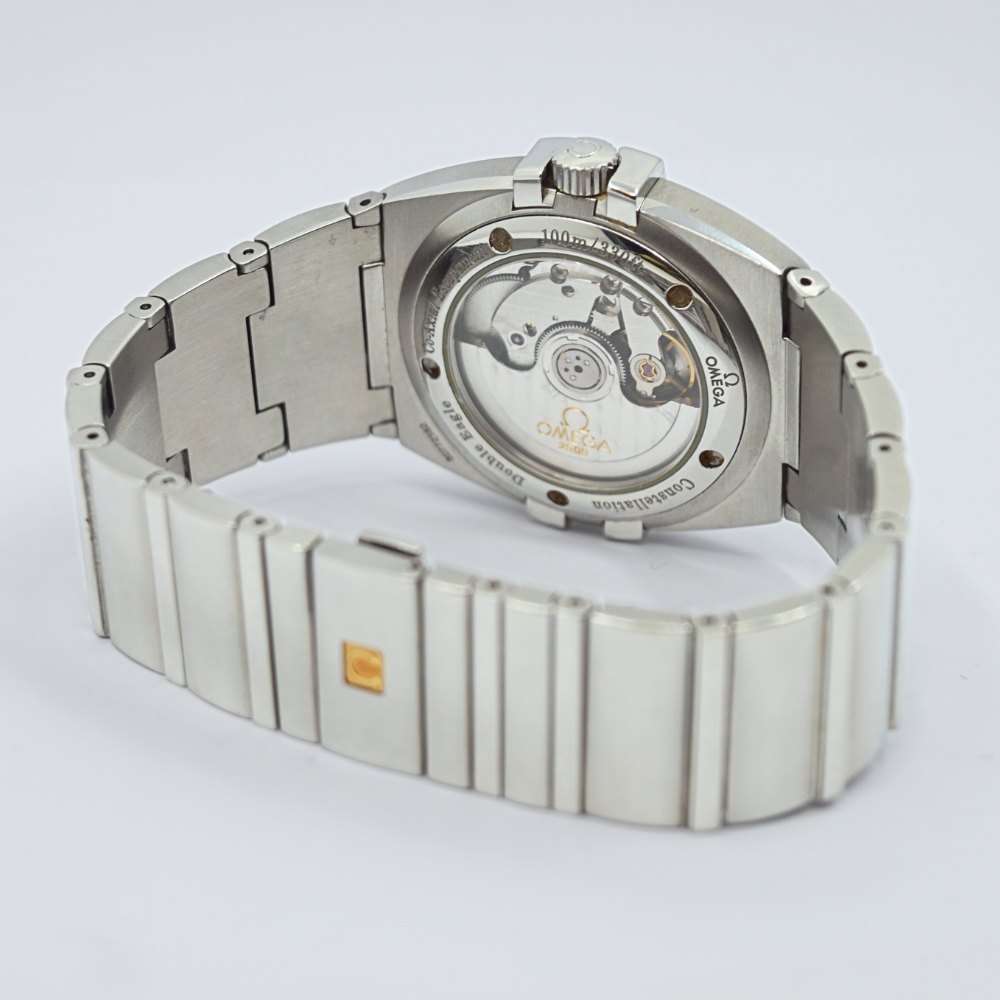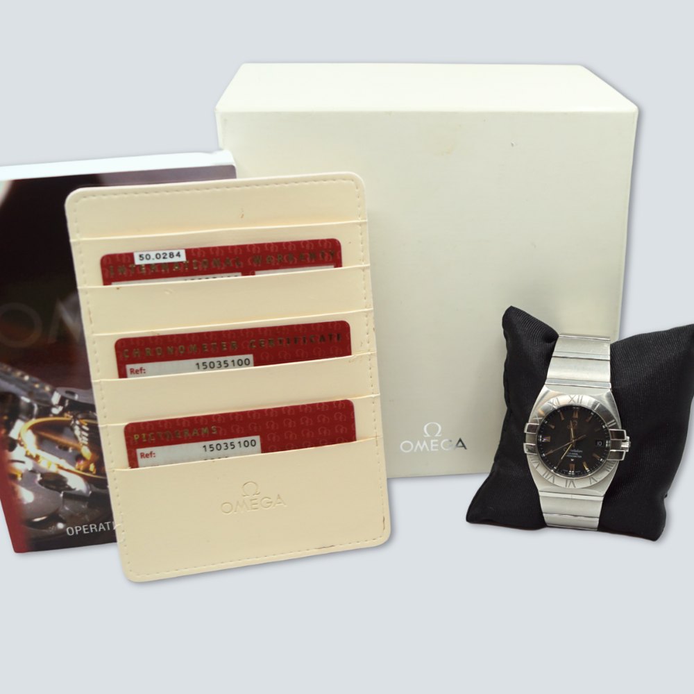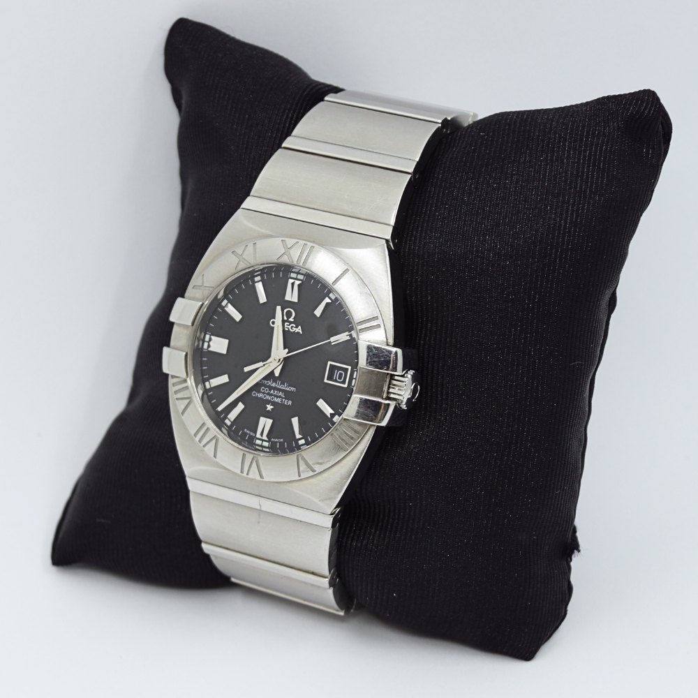 Omega armbåndsur, model Constellation Double Eagle, med sort urskive og stål rem. Co-axial chronometer. Ref. 15035100. Cal: 2500. Automatic. Omega herreur, købt fra ny d. 12/09/07. Diameter 42 mm. Med original boks og papirer. Ekstra led medfølger.