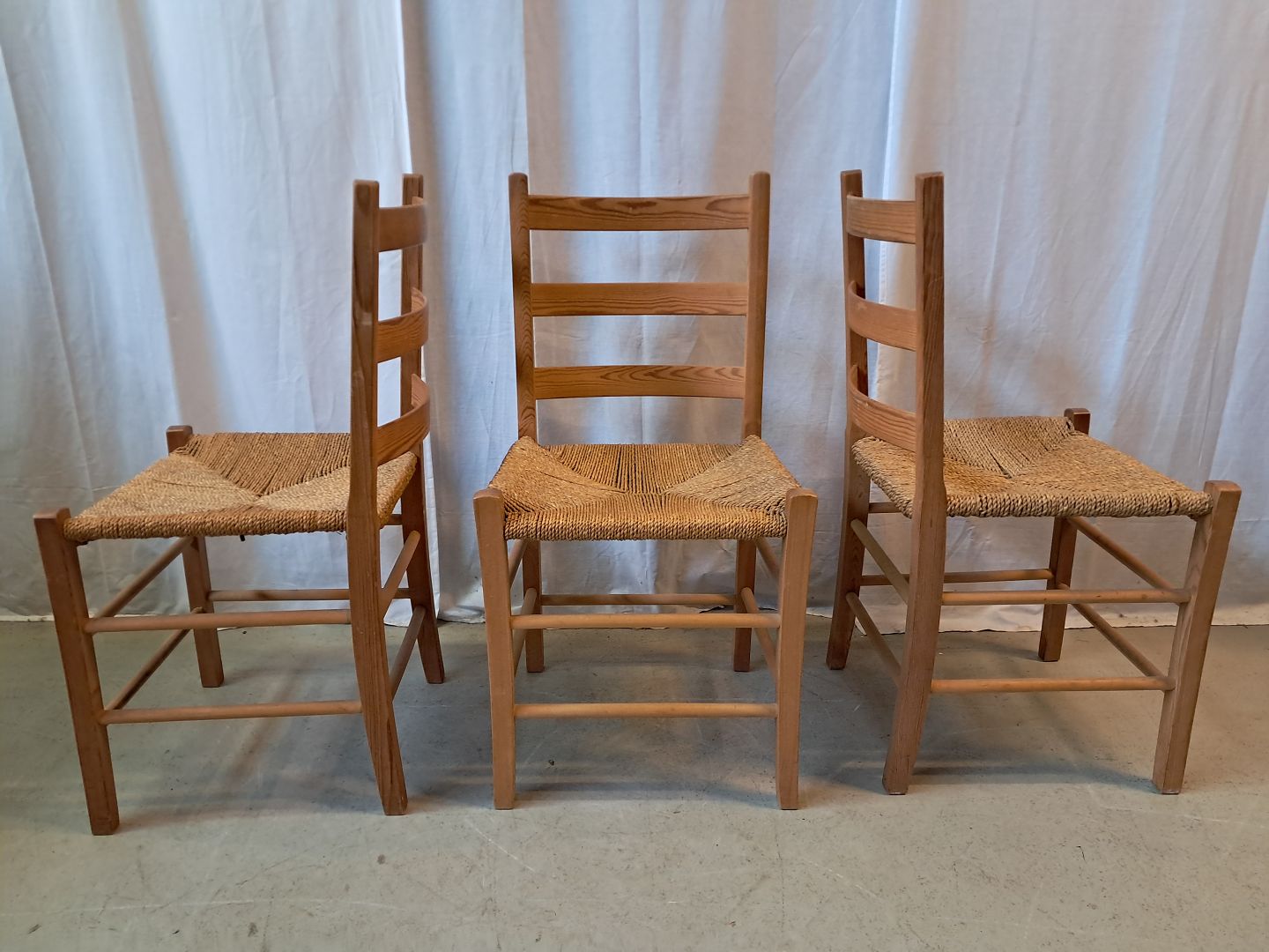 3 Stole i massivt fyrretræ, fra 1980erne.