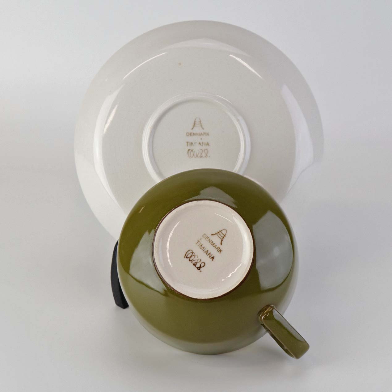 Tekop med underkop i fajance fra stellet Timiana fremstillet i perioden 1960-1969