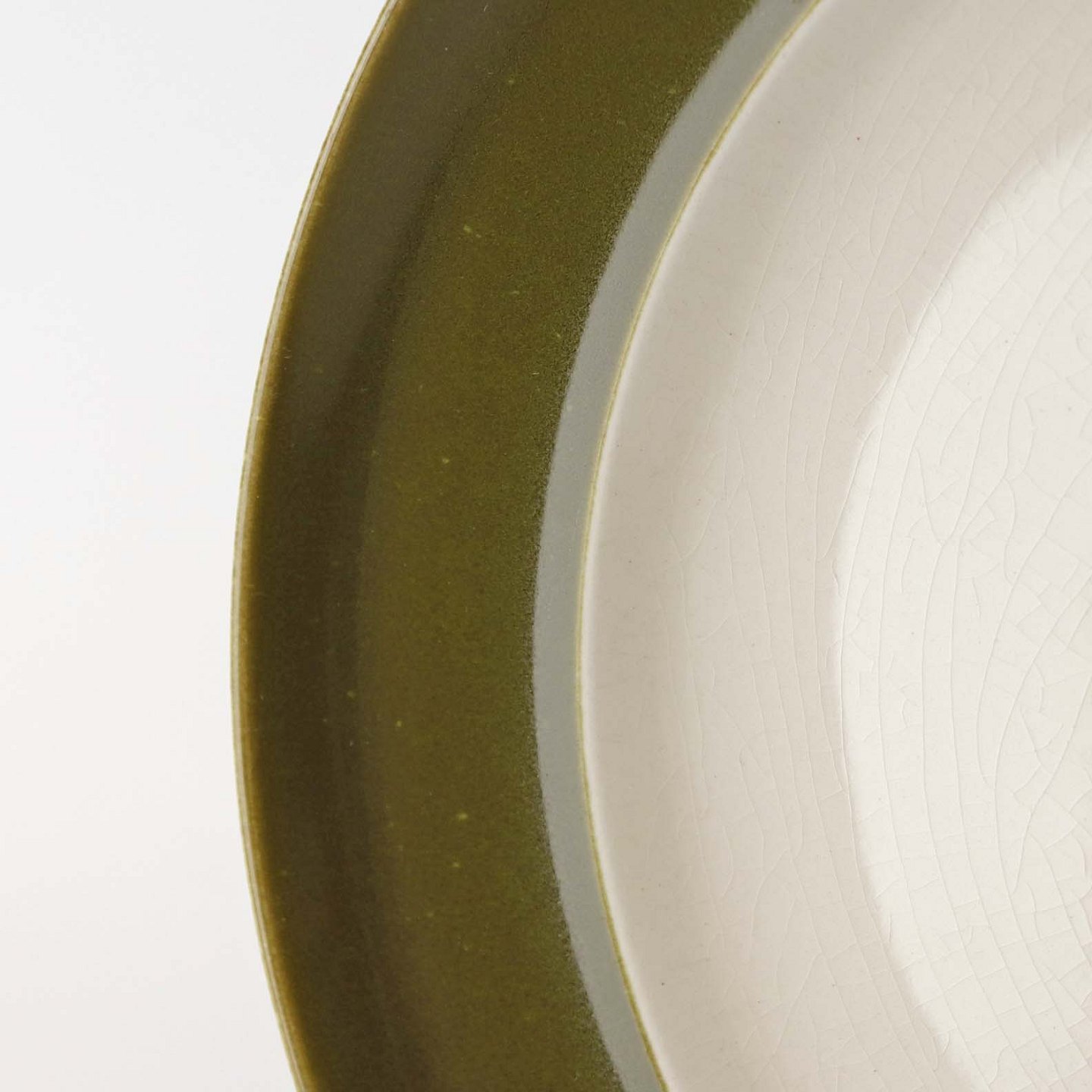 Flaskegrøn fajancestel i Prunella stelform med inderside i hvid glasur og tynd rød kant stribe.