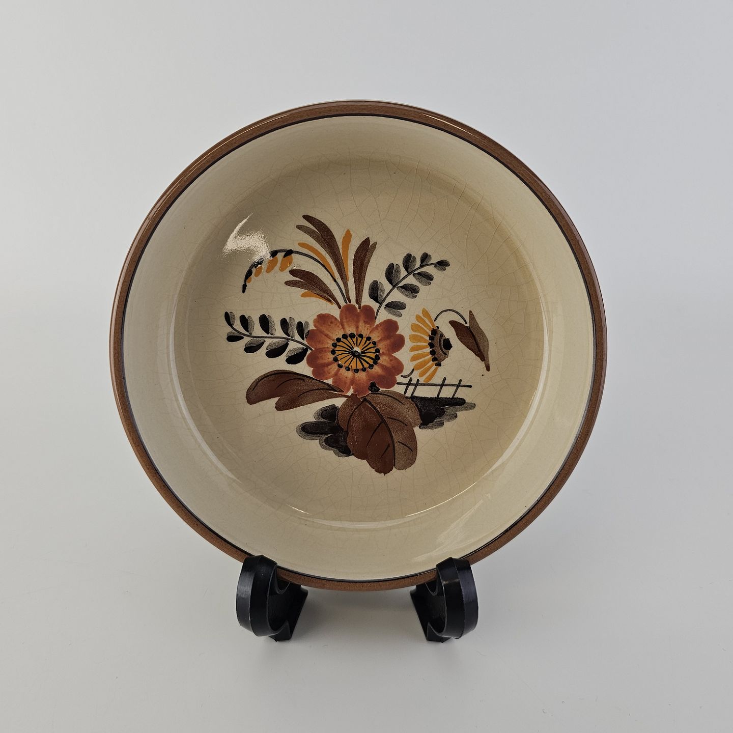 Knud er cremefarvet fajance dekoreret med flettet kant og brune og orange blomster. Stellet blev produceret i år 1934-1963.