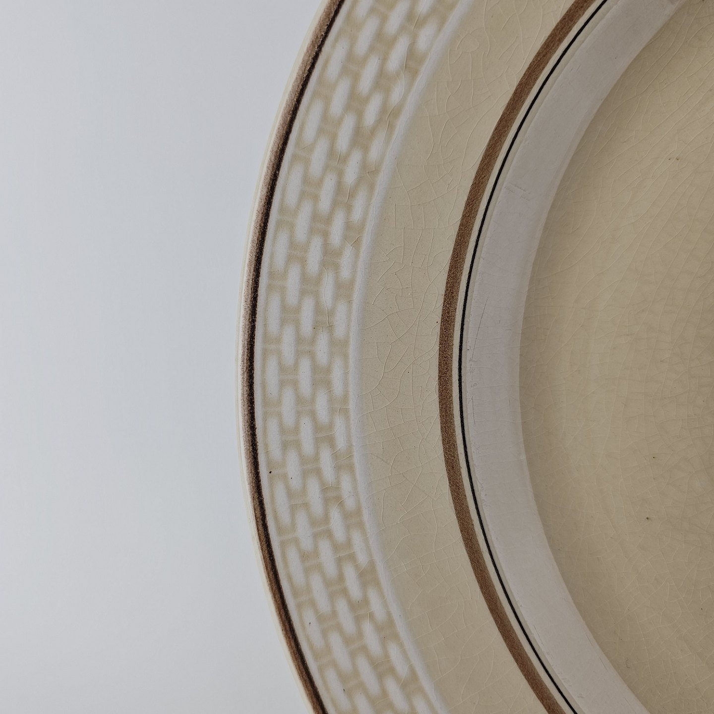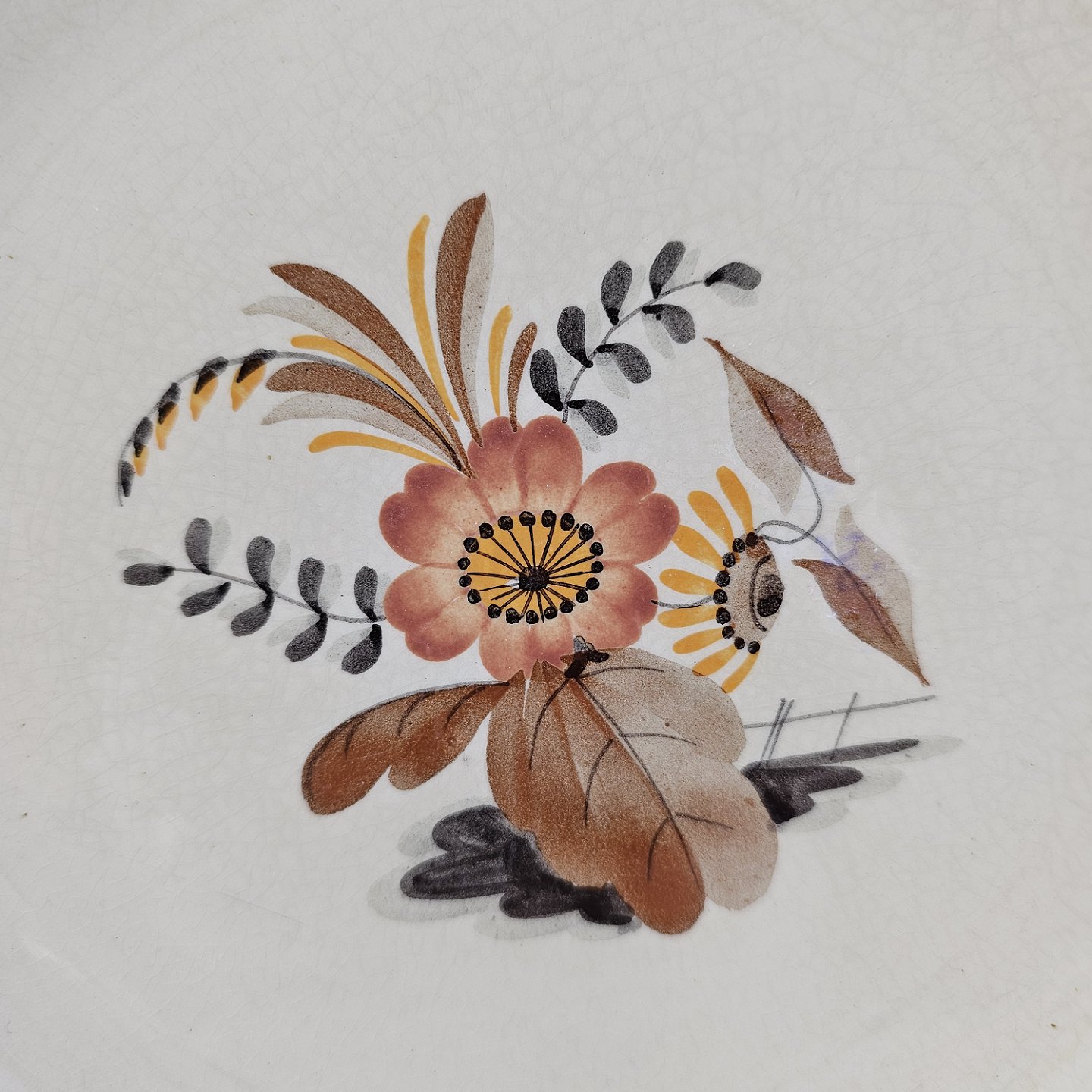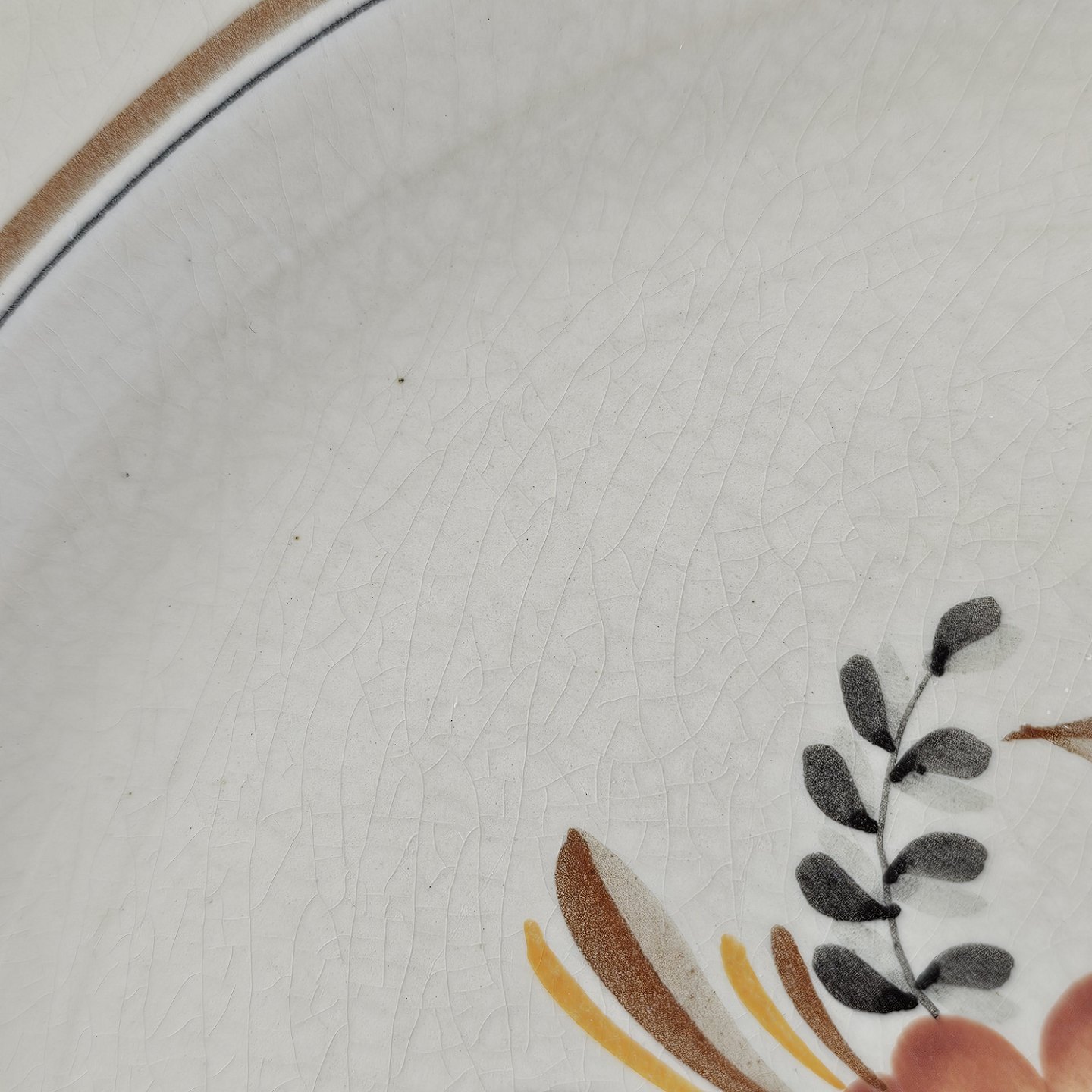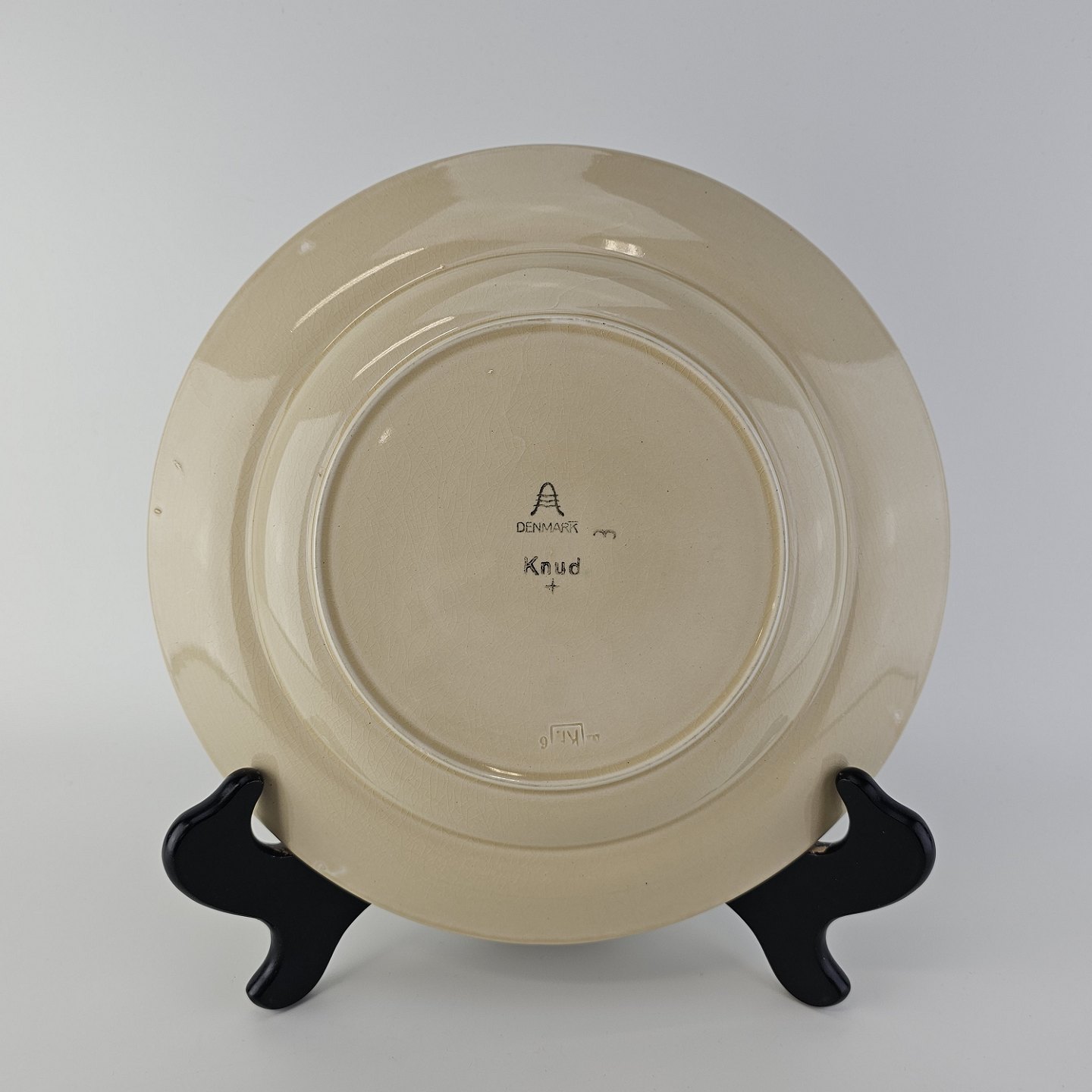 Knud er cremefarvet fajance dekoreret med flettet kant og brune og orange blomster. Stellet blev produceret i år 1934-1963.