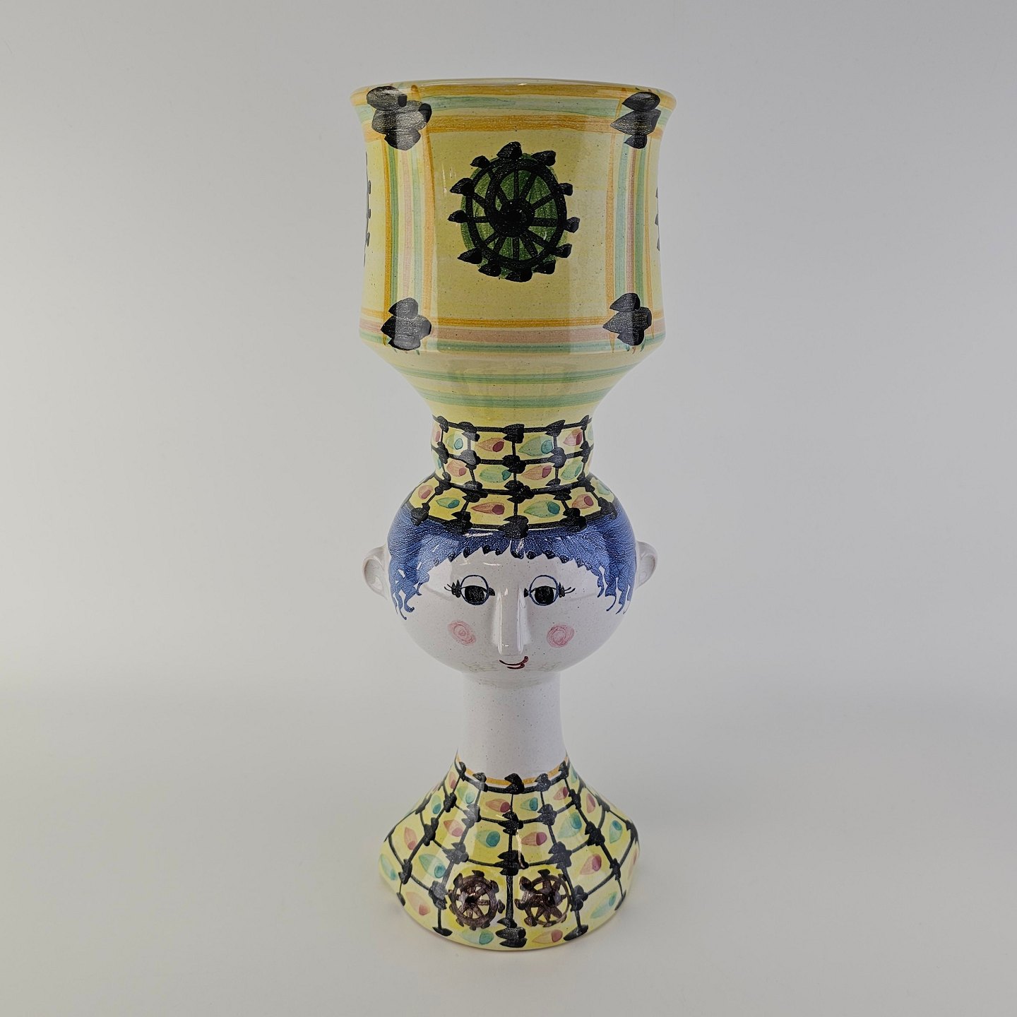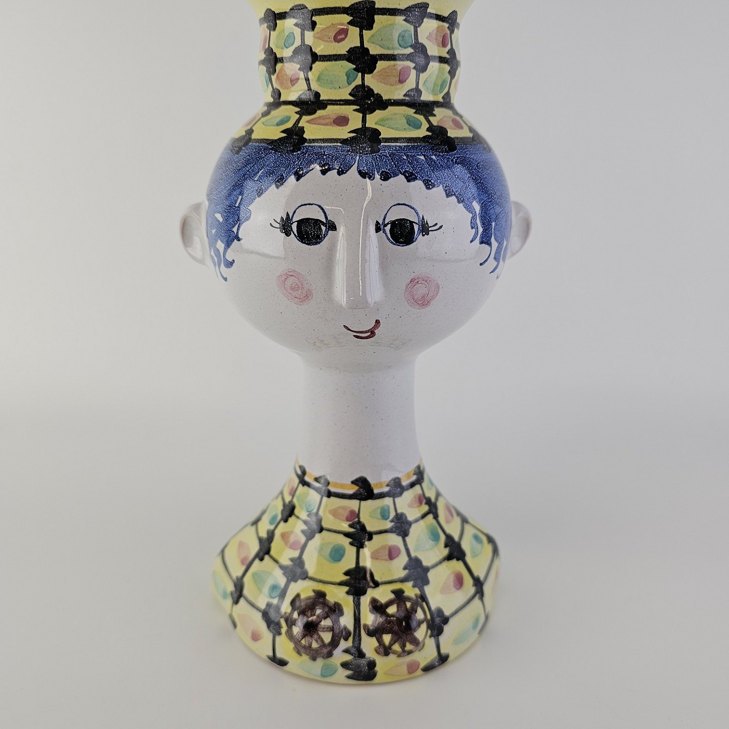 Håndmalet vase af porcelæn med motiv af et kvindehoved