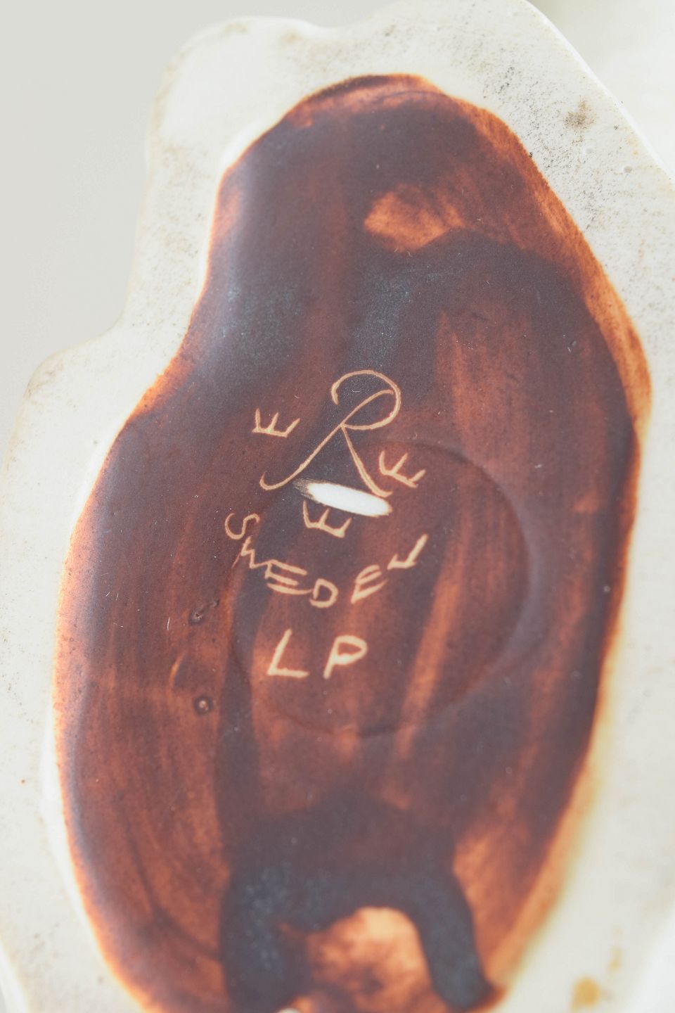 Lillemor Petersson for Rörstrand, kattefigur i stentøj på træfod.