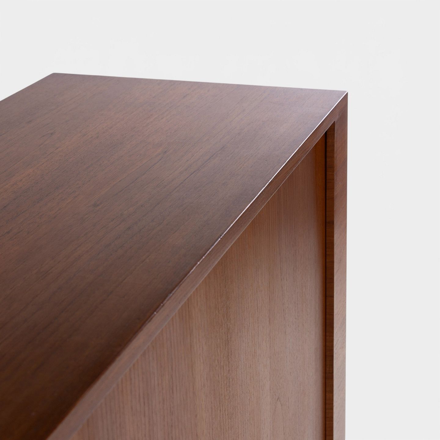 RY 25 - Høj skænk i patineret teak med jalousilåger på stel i stål med sko i teak.