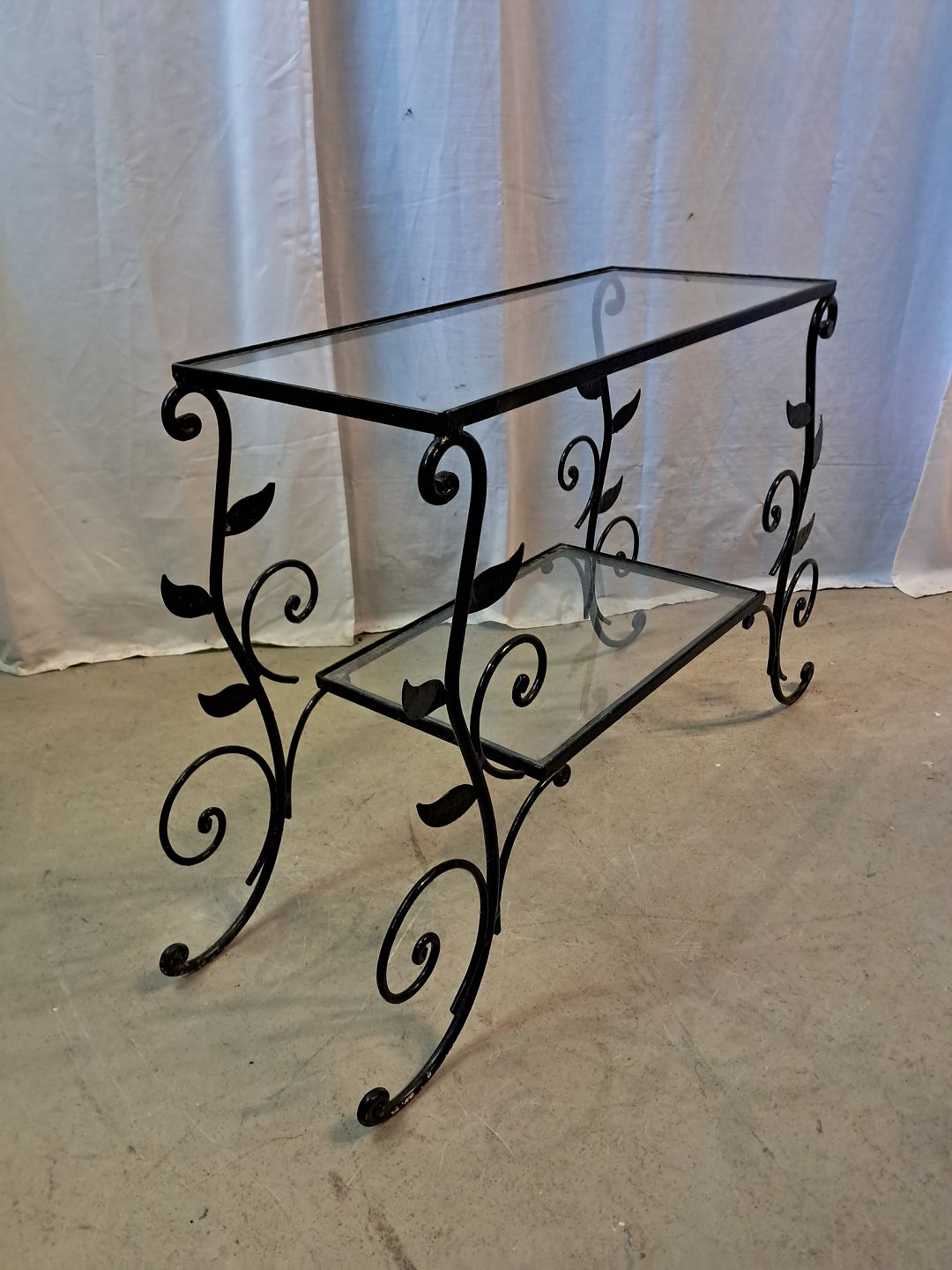 Plantebord i malet metal med glasplader, fra 1940erne.