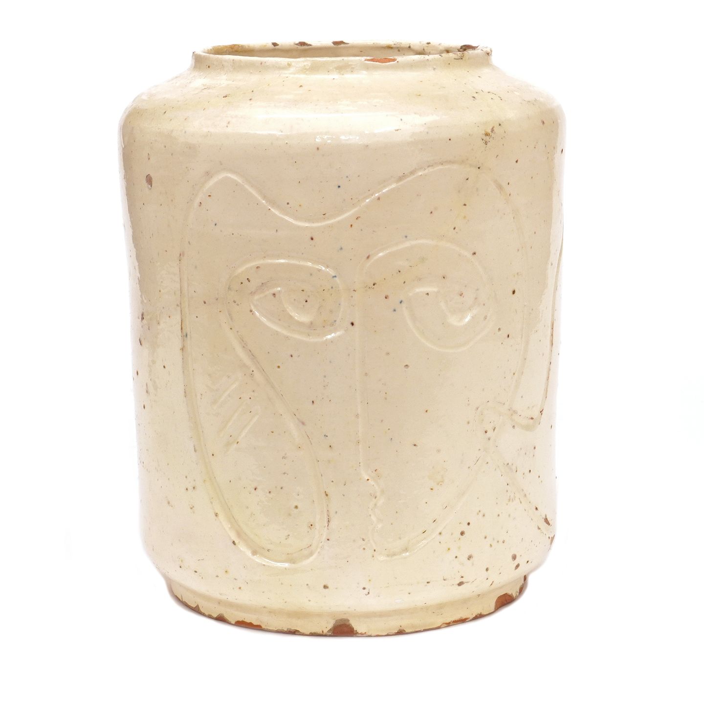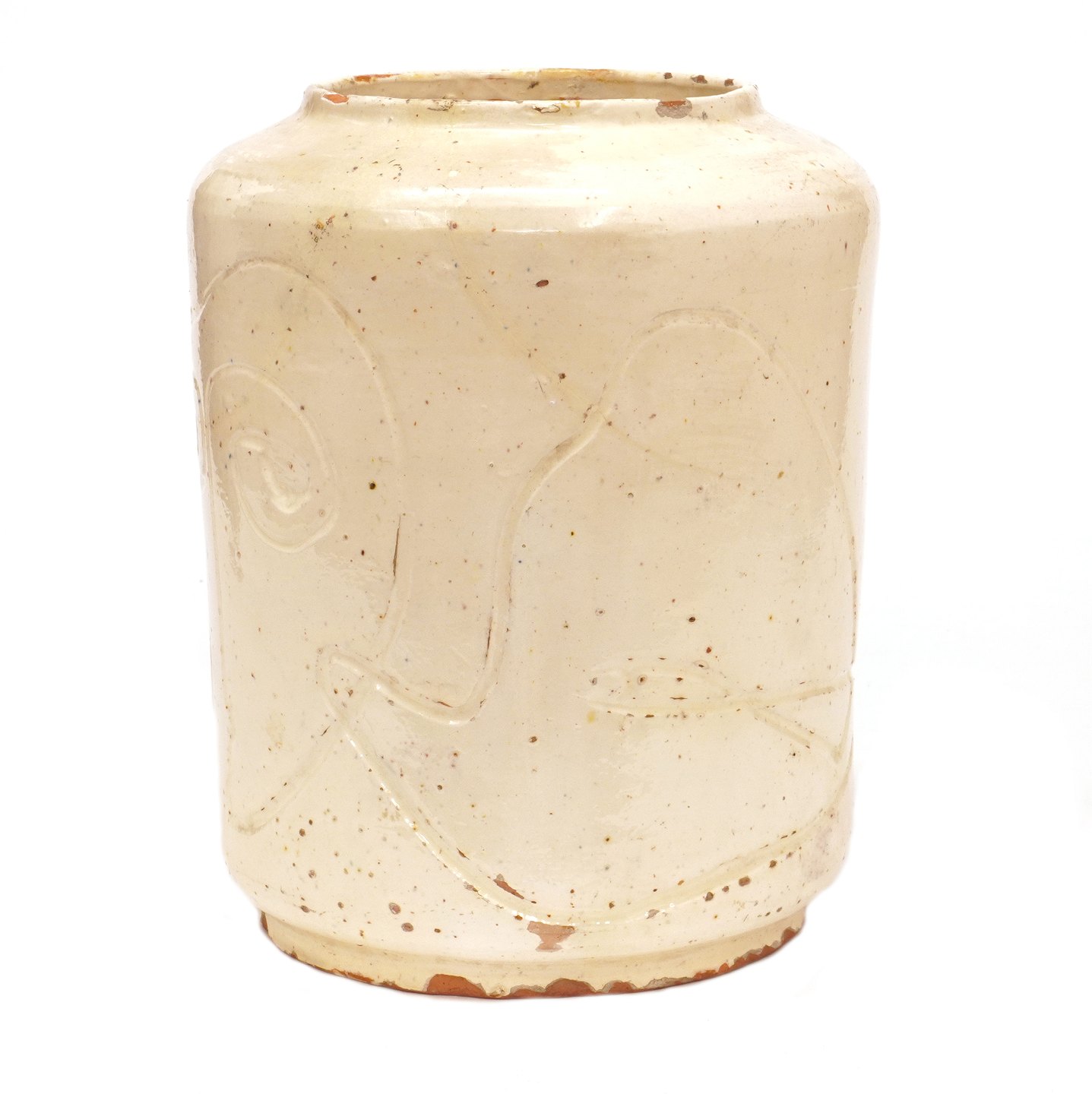 Asger Jorn keramik. Asger Jorn, 1914-73, vase i lertøj med lys glasur og dekorationer