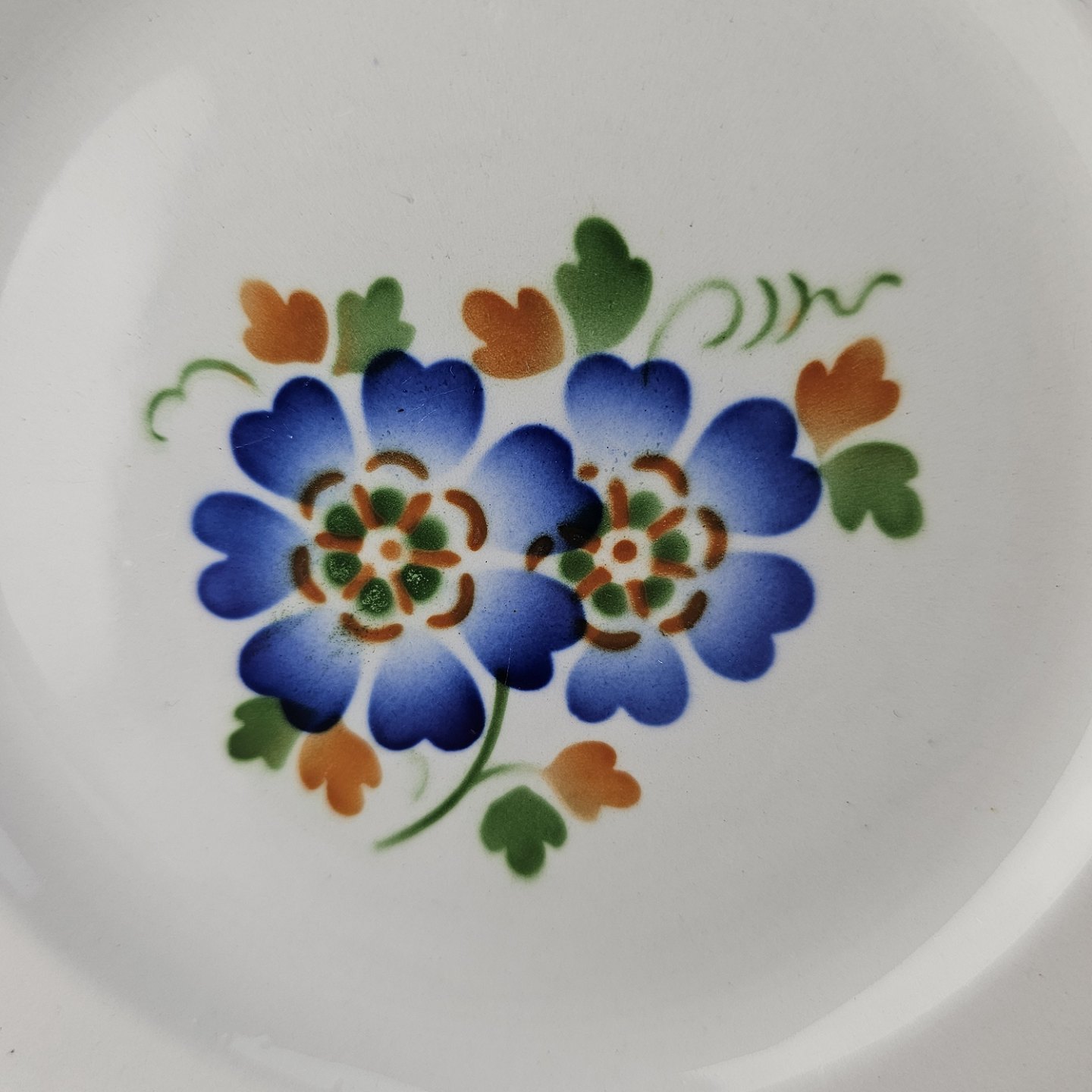 Kagetallerken i fajance fra stellet Geranium II fremstillet i perioden 1927-1940.