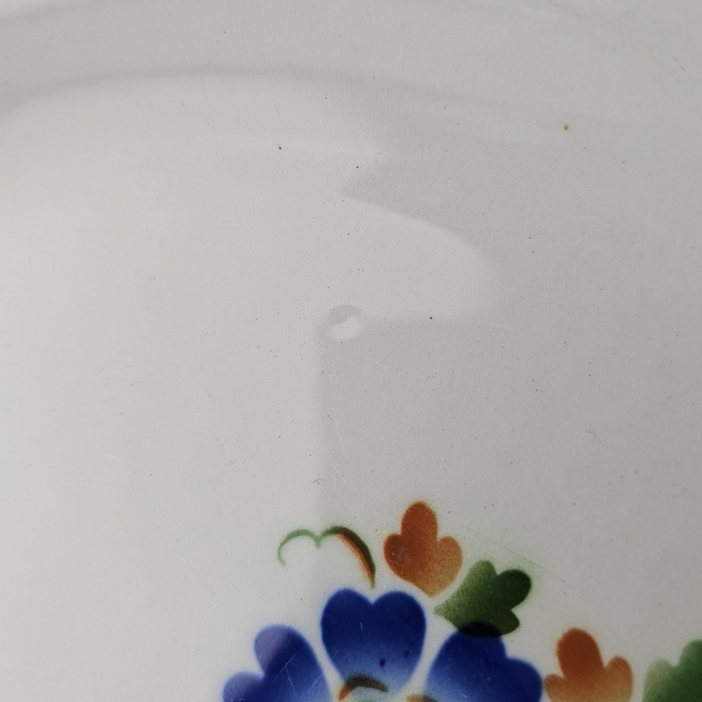 Ovalt fad i fajance fra stellet Geranium II fremstillet i perioden 1927-1940.