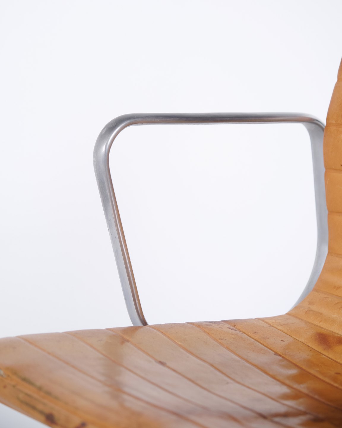 Charles Eames Kontorstol Model EA 117 i Aluminium og Cognacfarvet Læder, Vitra