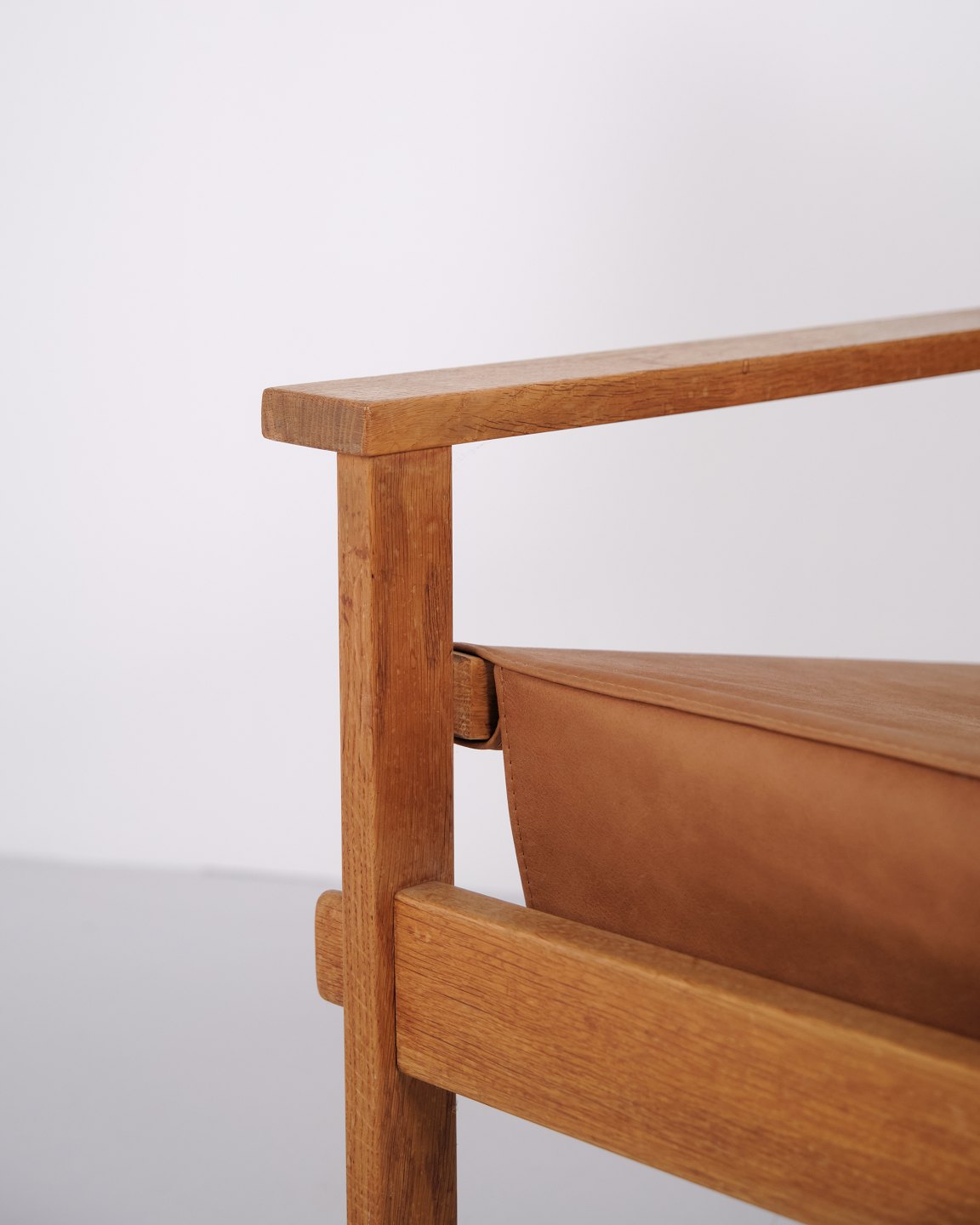 Lænestol, model 60, designet af Kai Winding i 1961 og fremstillet hos Poul Hundevad i Danmark. Stolen er udført i massivt egetræ med sæde og ryg i kernelæder, hvilket giver et klassisk og tidløst udtryk.
