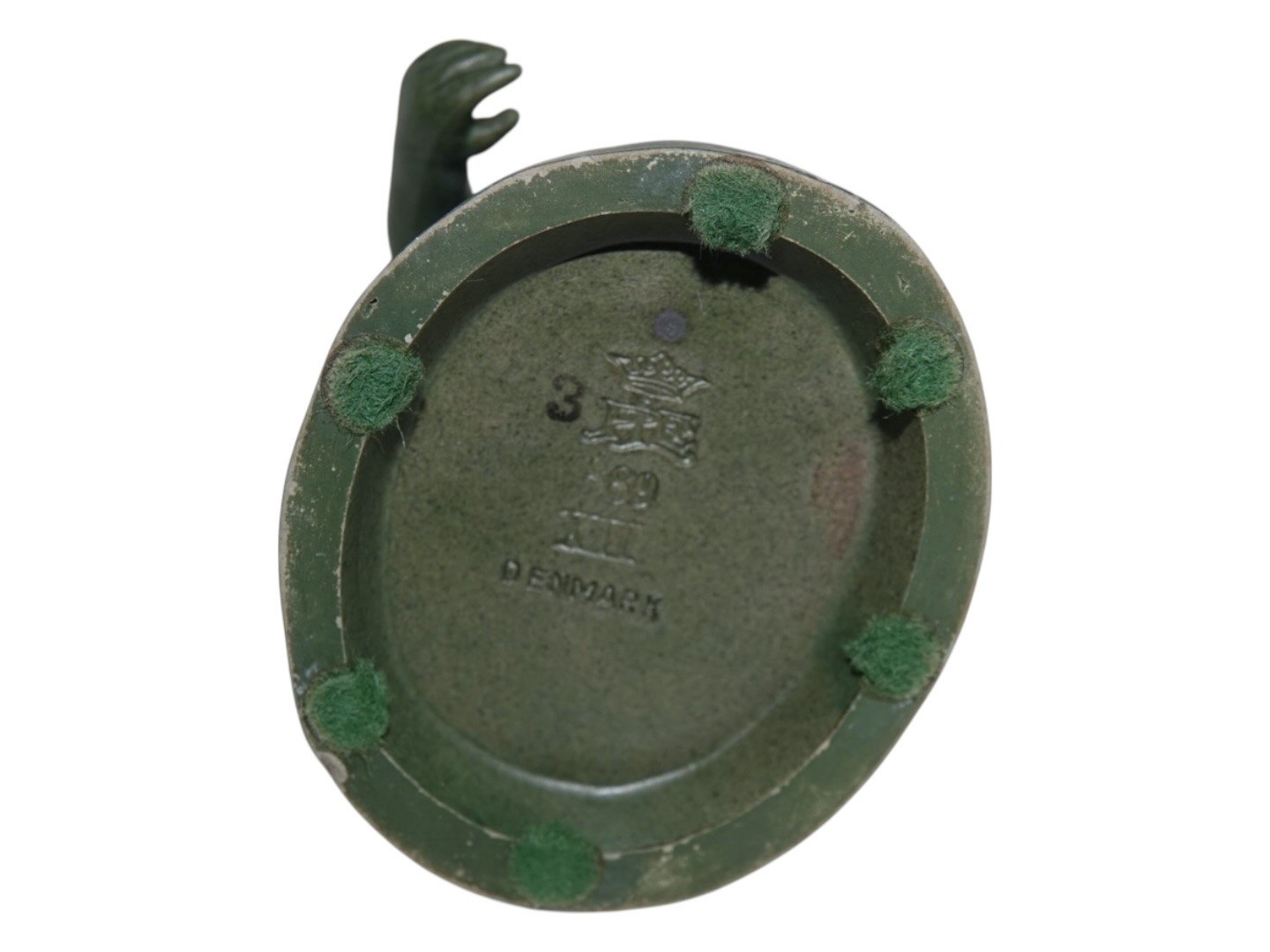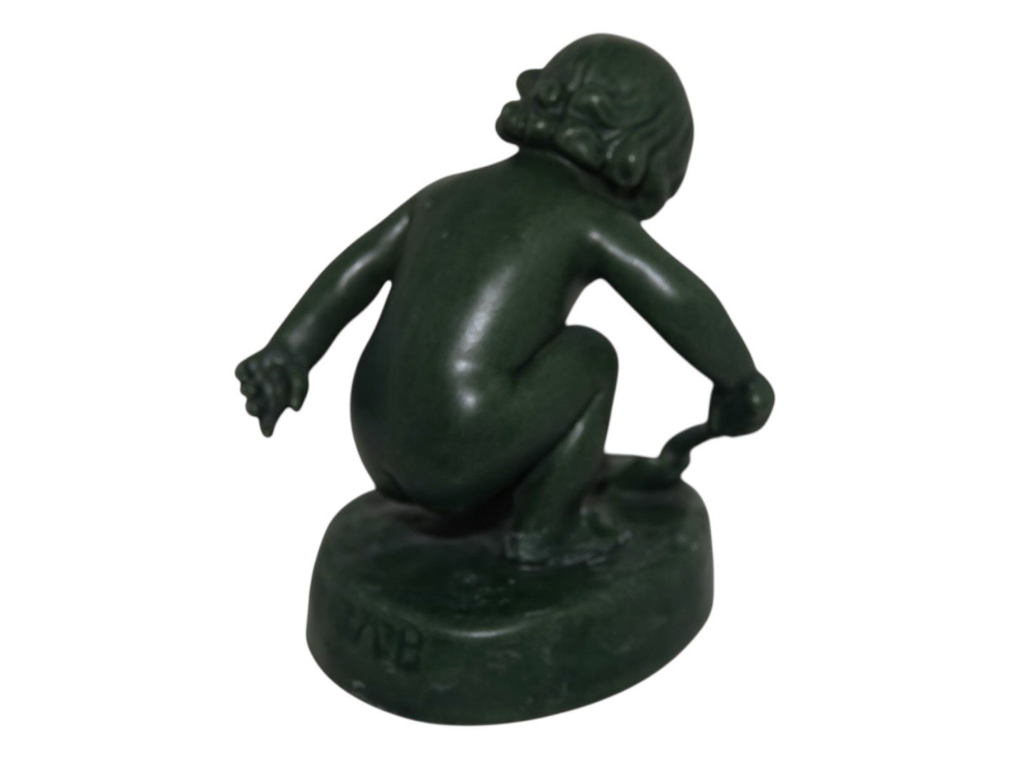 Ipsen keramik med grøn glasur. Figur af pige med sandskovl.