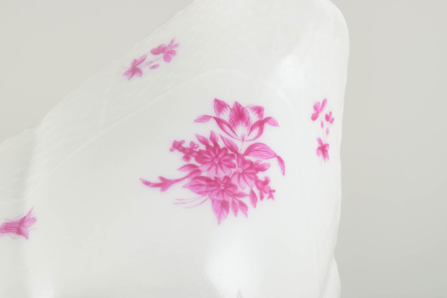 Herend Porcelánmanufaktúra blev grundlagt i 1826 i Herend, Ungarn. Fabrikken opnåede international anerkendelse ved Verdensudstillingen i London i 1851 og blev hurtigt leverandør til europæiske kongehuse og aristokrati. Apponyi-dekorationen blev udviklet i slutningen af 1800-tallet og er opkaldt efter den ungarske greveslægt Apponyi. Dekoren er kendetegnet ved stiliserede blomsterbuketter, som findes i flere farvevarianter, herunder den rosa udgave.