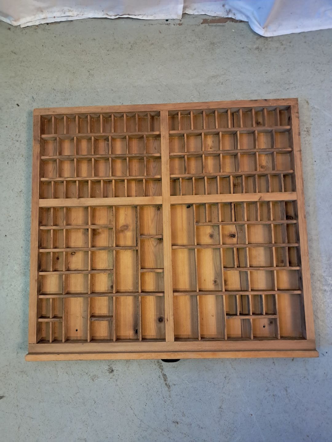 Sætterkasse i massivt bøge og fyrretræ, fra 1920erne.