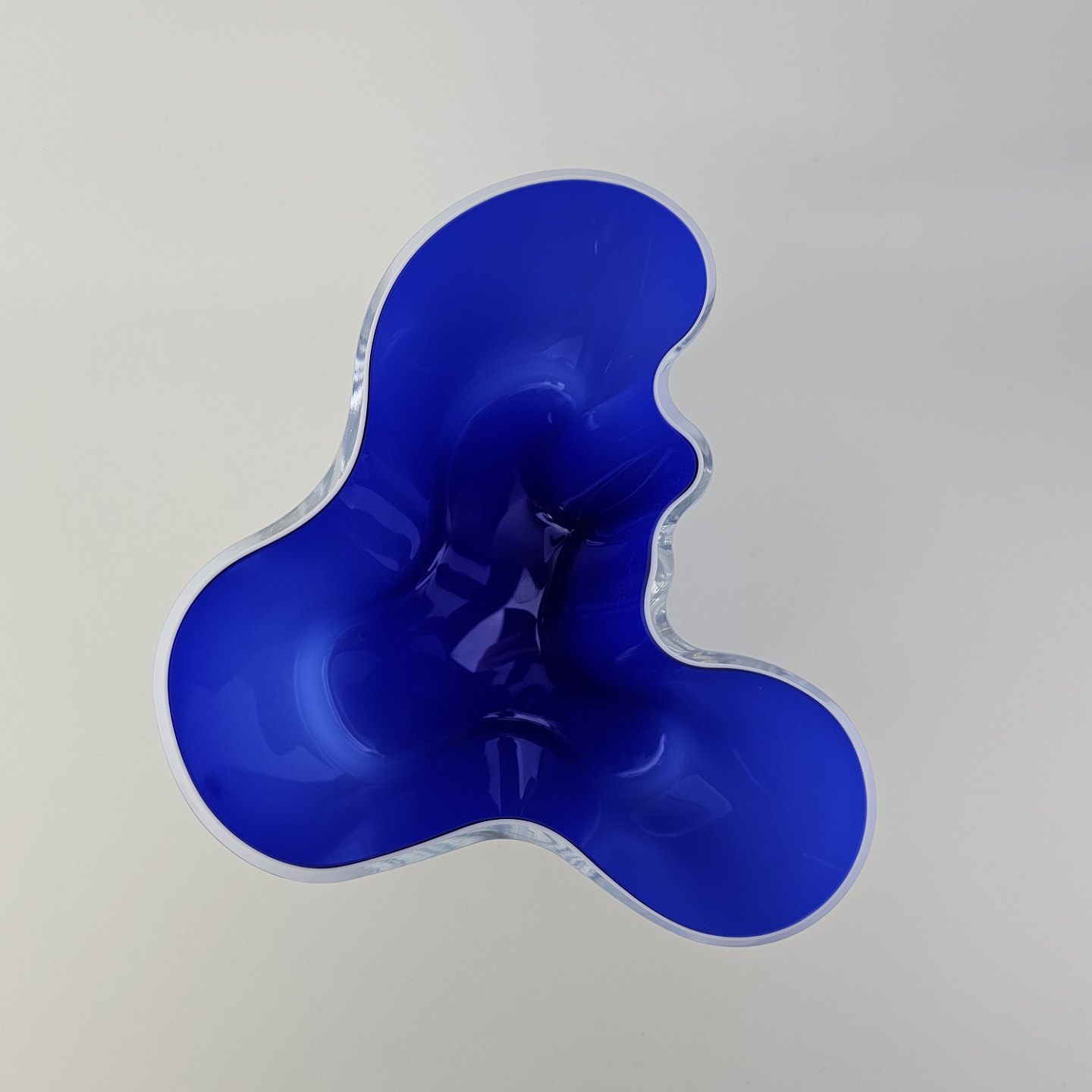 Savoy vase af glas, som er hvid på ydersiden og blå på indersiden