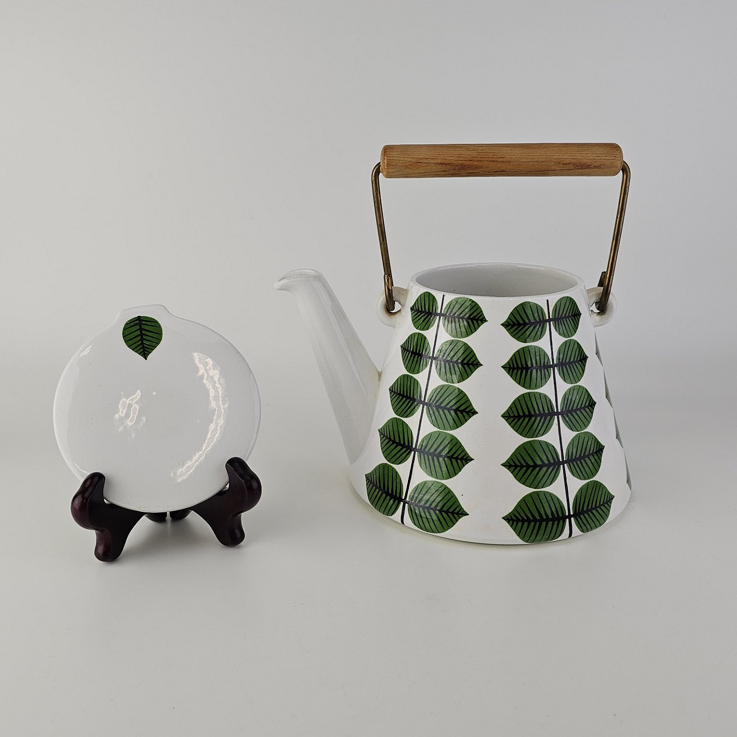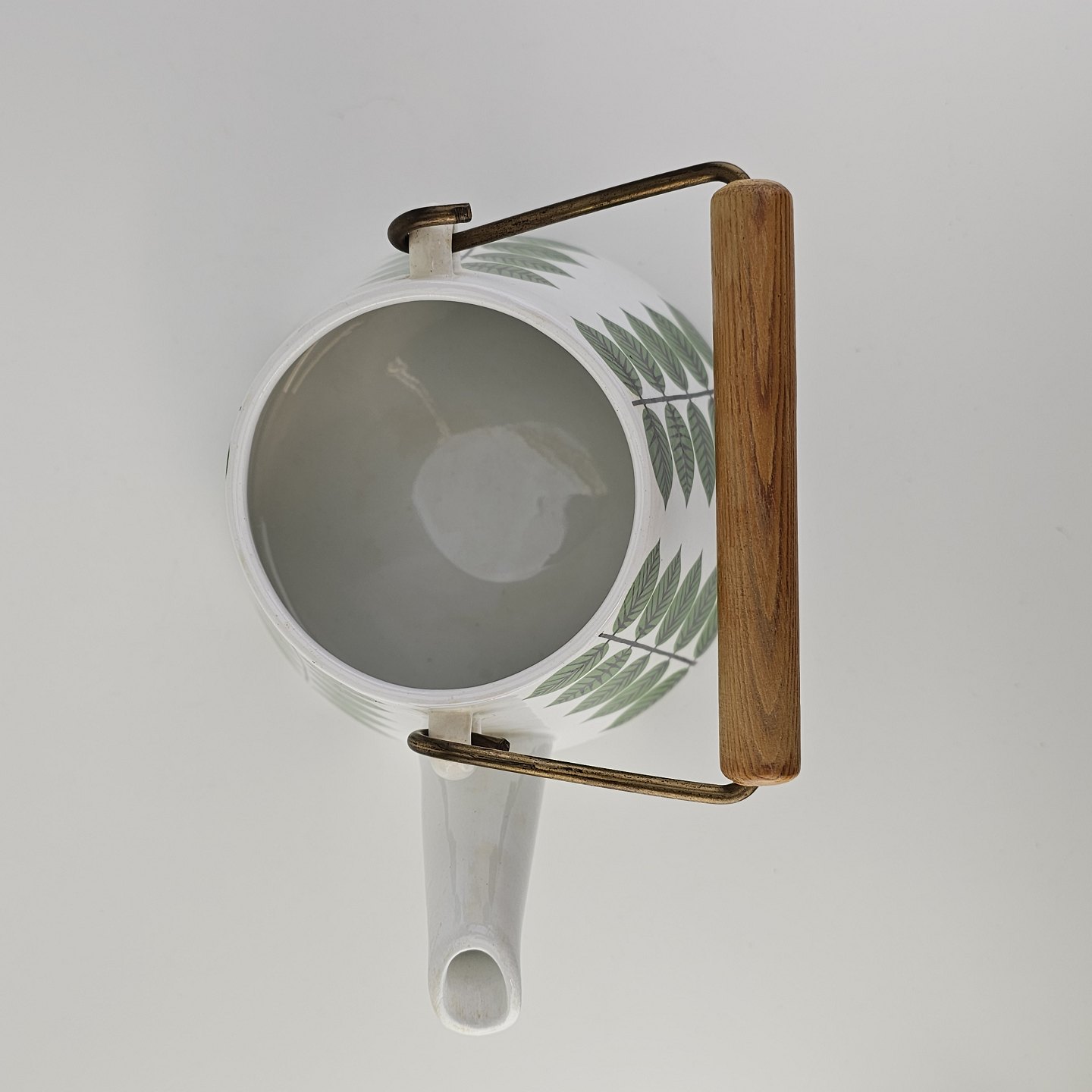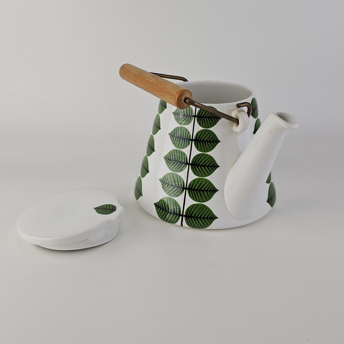 Stel i hvidt porcelæn med dekoration af grønne blade