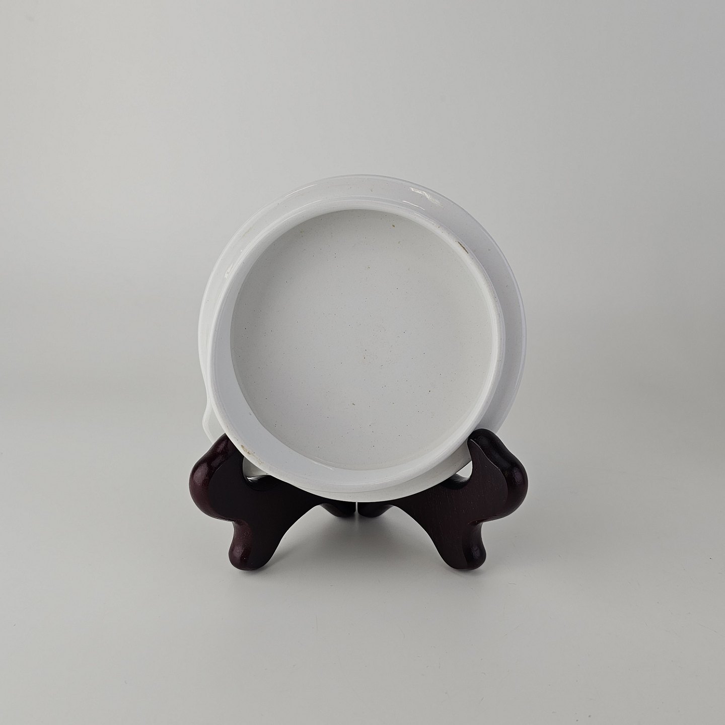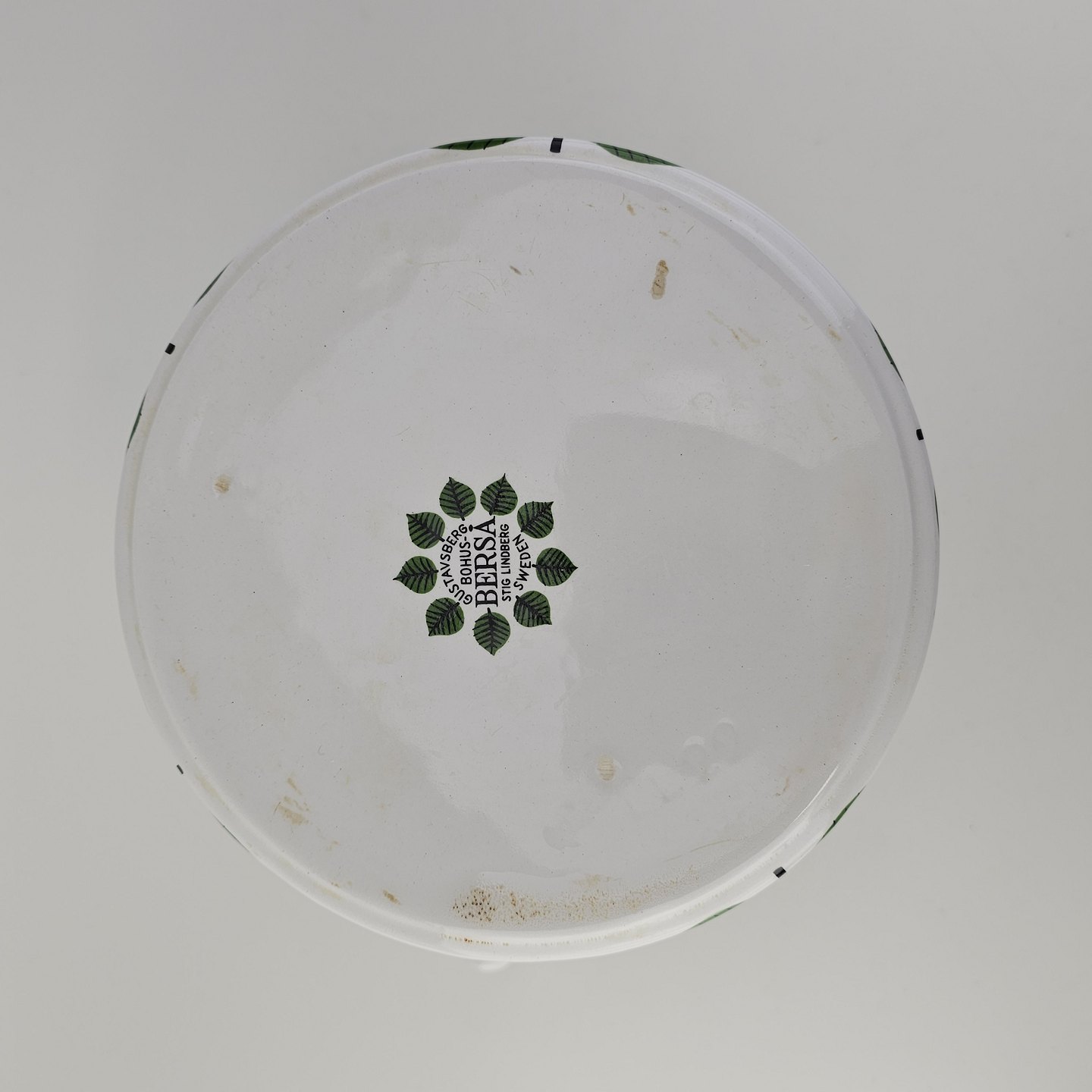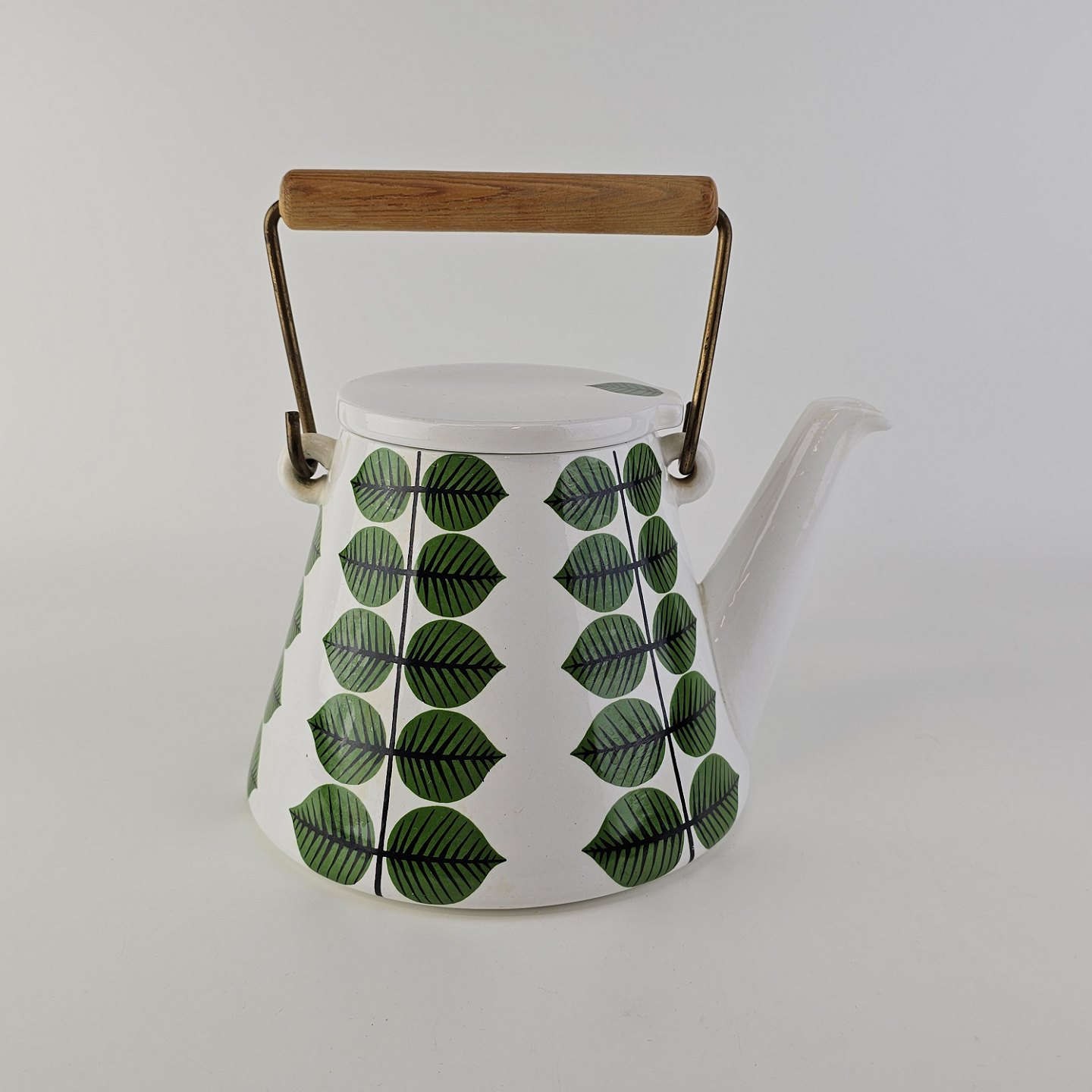 Stel i hvidt porcelæn med dekoration af grønne blade