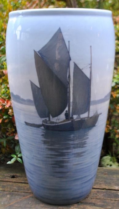 Große Vase von Royal Copenhagen mit Schiffen, Nr. 2105/66, Dänemark.