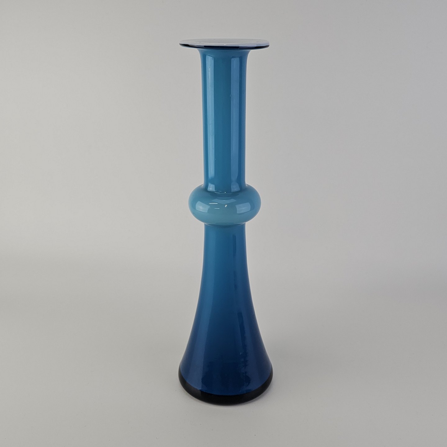 Vase i opal hvid mundblæst glas med blåt overfang