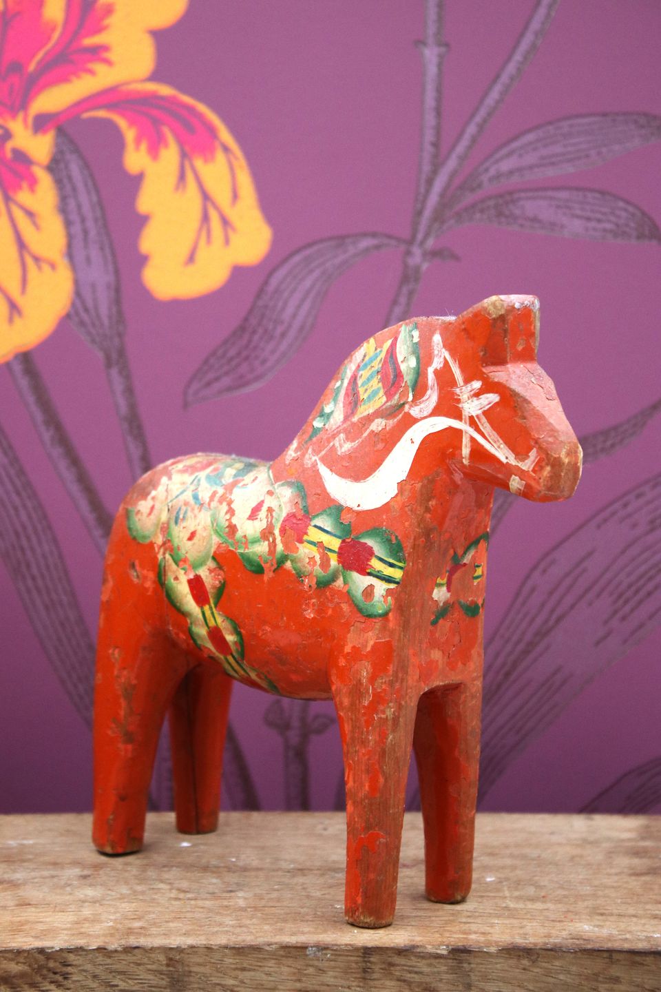 Gammel svensk Dalahest med original bemaling med fin patina...