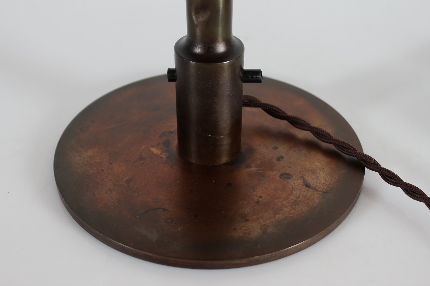 Lampefod af patineret kobber og metal
