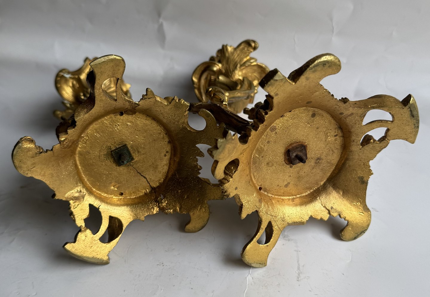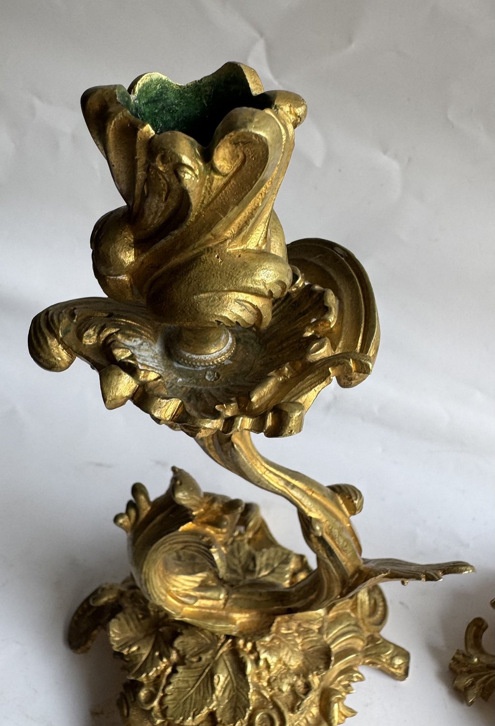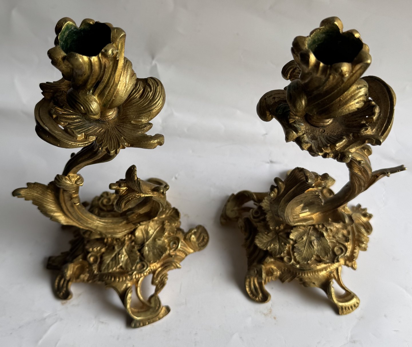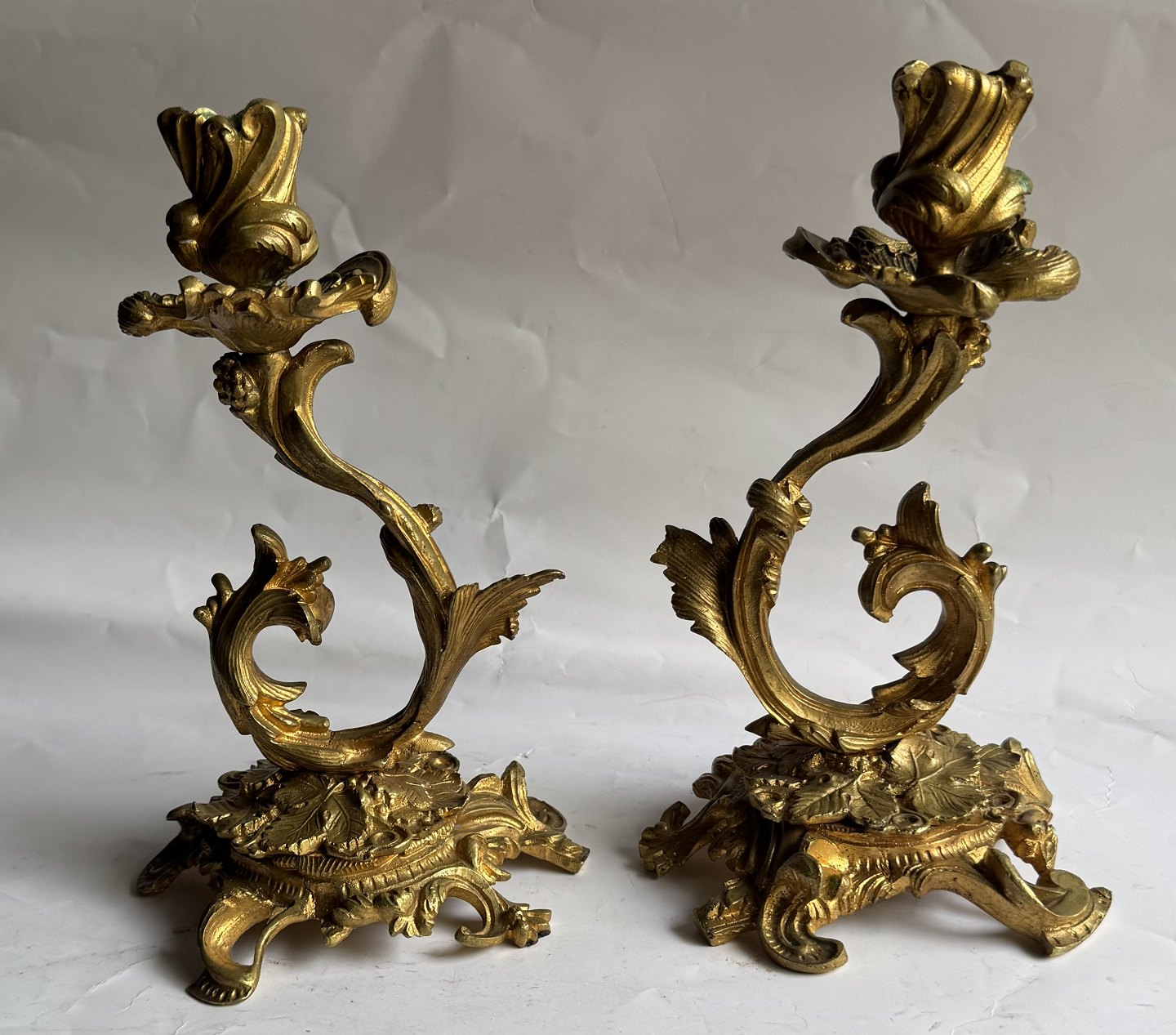 Pair of rococo gilt bronze candlesticks made in France in the mid-19th century. In good condition with very few signs of wear. H. 22.5 cm.